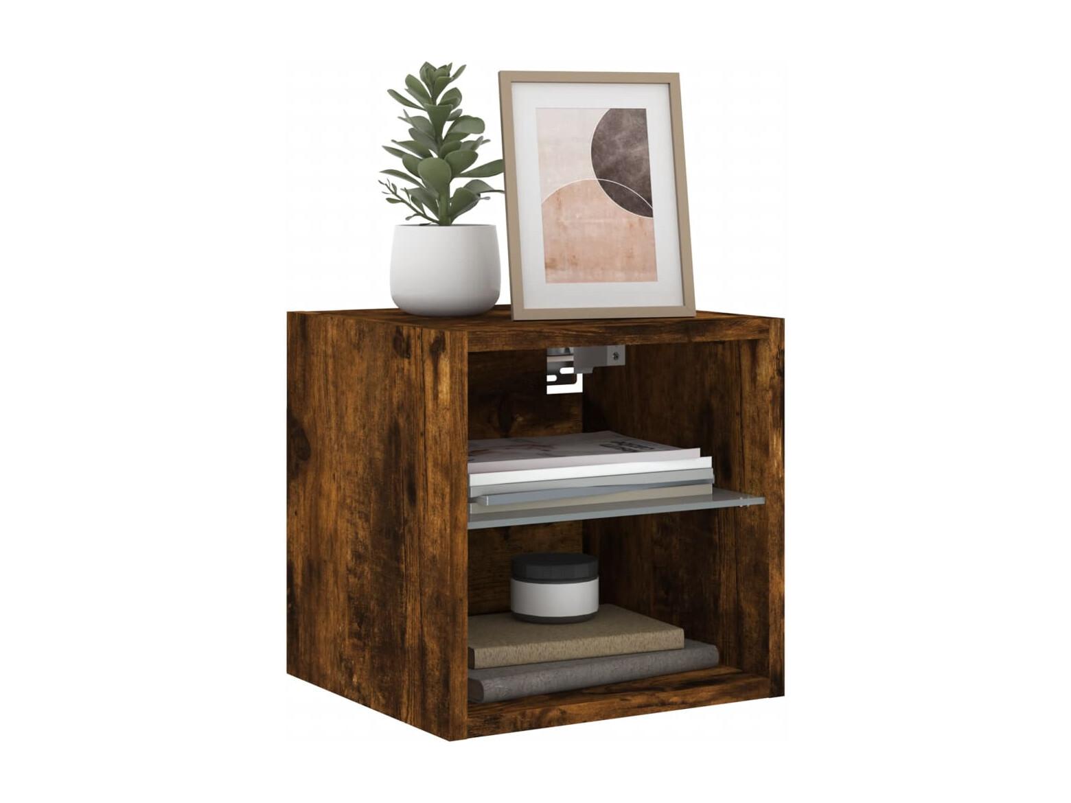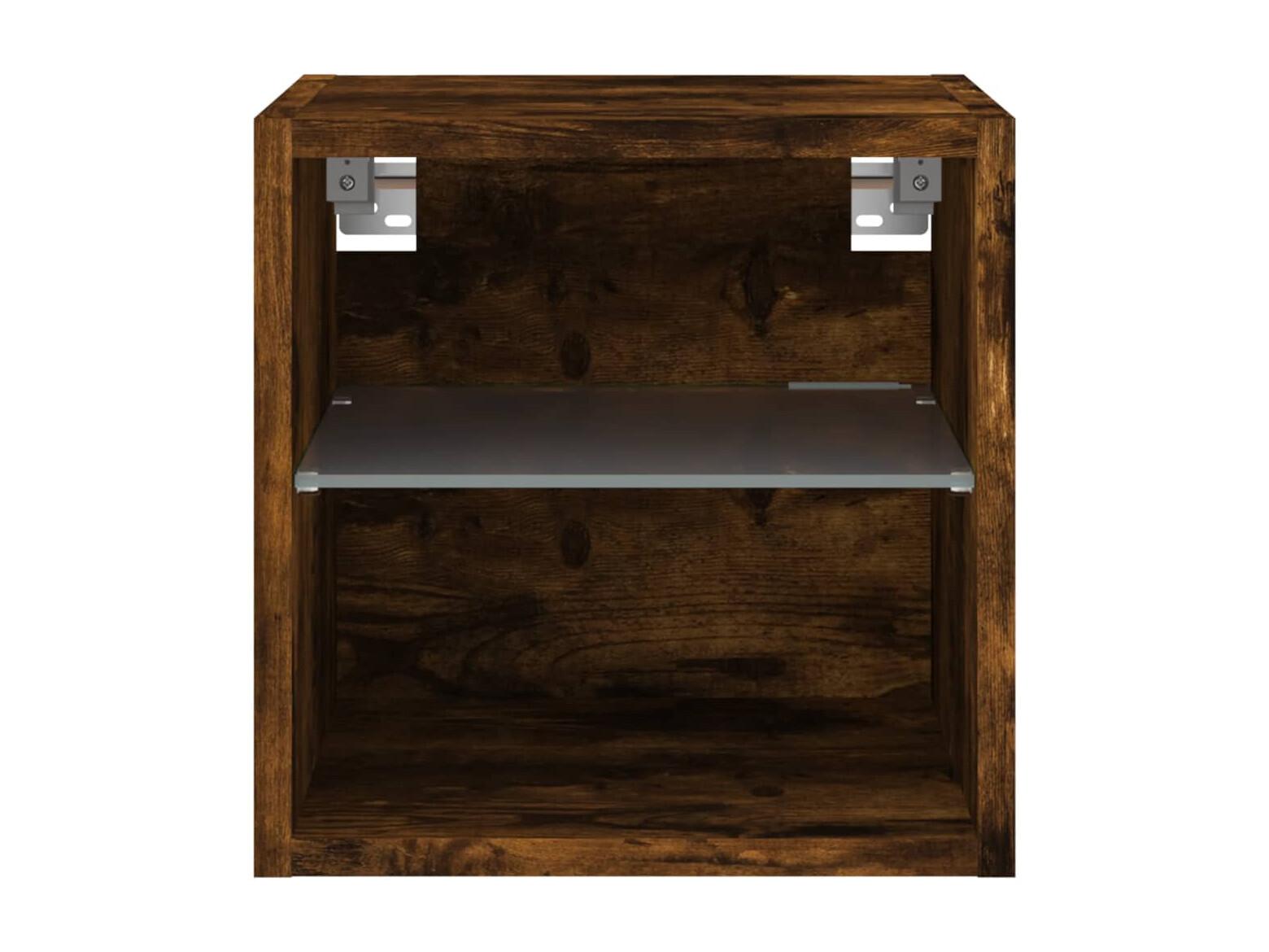 Mueble de TV de pared con luces LED roble ahumado 30x28,5x30 cm
