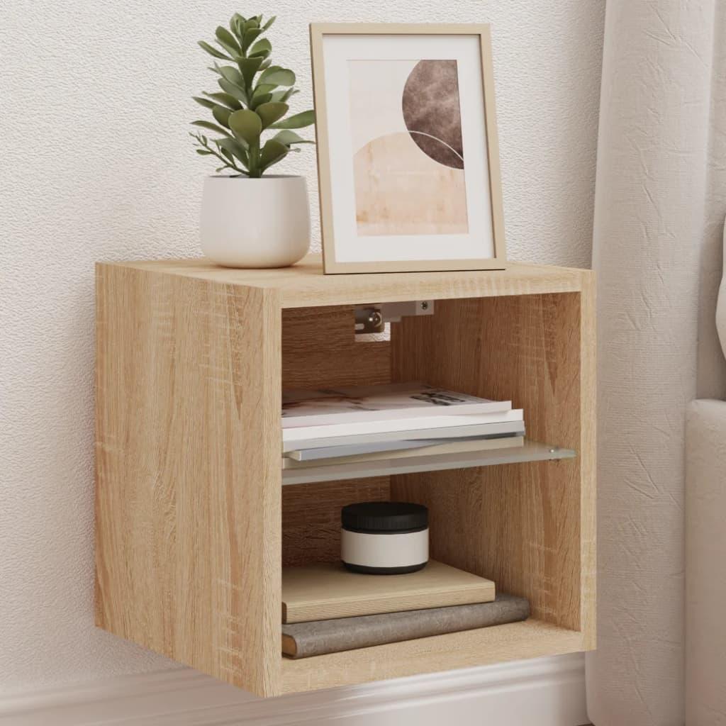 Mueble de TV de pared con luces LED roble Sonoma 30x28,5x30 cm