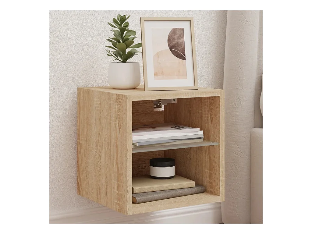 Mueble TV de pared con luces LED roble ahumado 30x28,5x30 cm ES81197