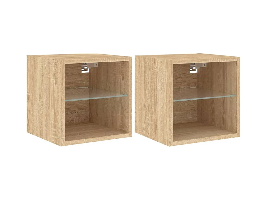 Muebles TV de pared luces LED 2 uds roble Sonoma 30x28,5x30 cm ES23810
