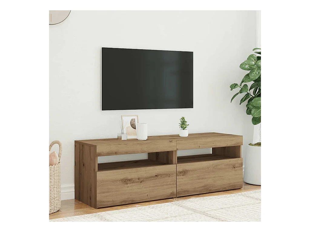 Muebles TV | Gabinetes de TV | Muebles de salón con luces LED 2 uds madera ingeniería roble artisan