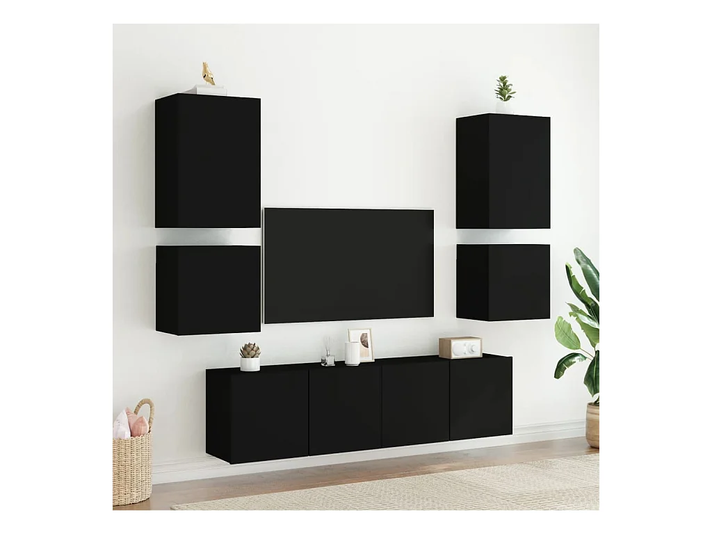 Mueble de TV | Mueble de salón de pared con luces LED negro 60x30x40 cm
