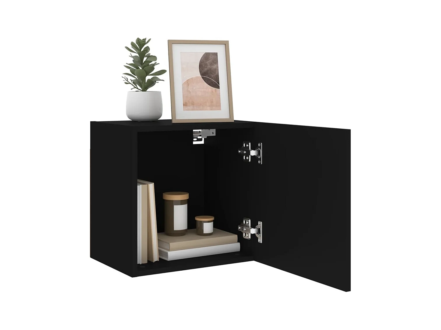 Mueble de TV | Mueble de salón de pared con luces LED negro 40,5x35x40 cm