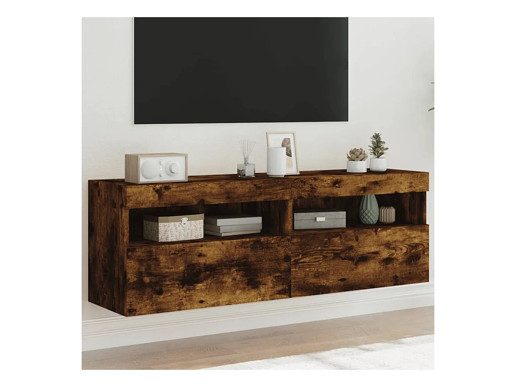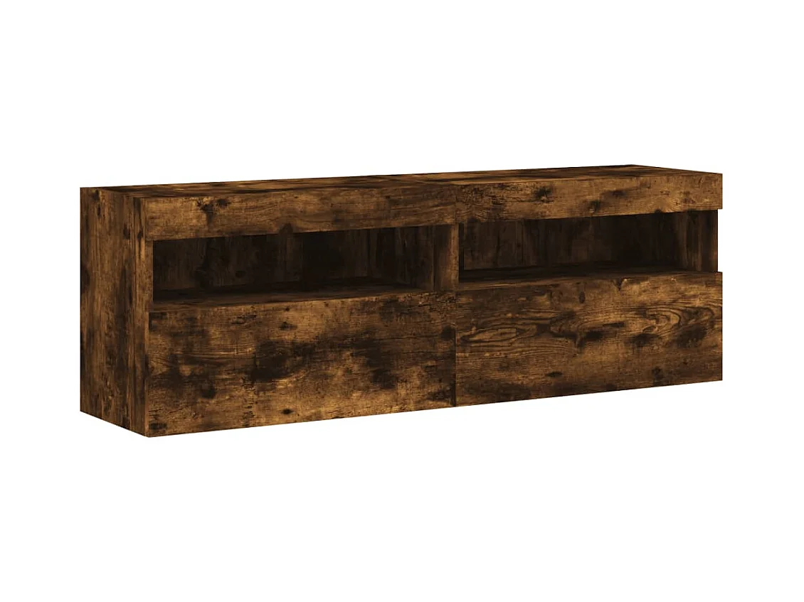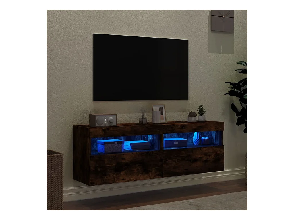 Muebles TV | Gabinetes de TV | Muebles de salón de pared luces LED 2 uds roble ahumado 60x30x40 cm