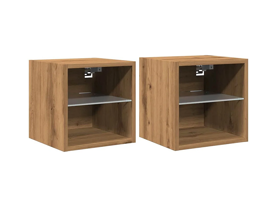 Muebles TV | Gabinetes de TV | Muebles de salón de pared luces LED 2 uds roble artisian 30x28,5x30cm