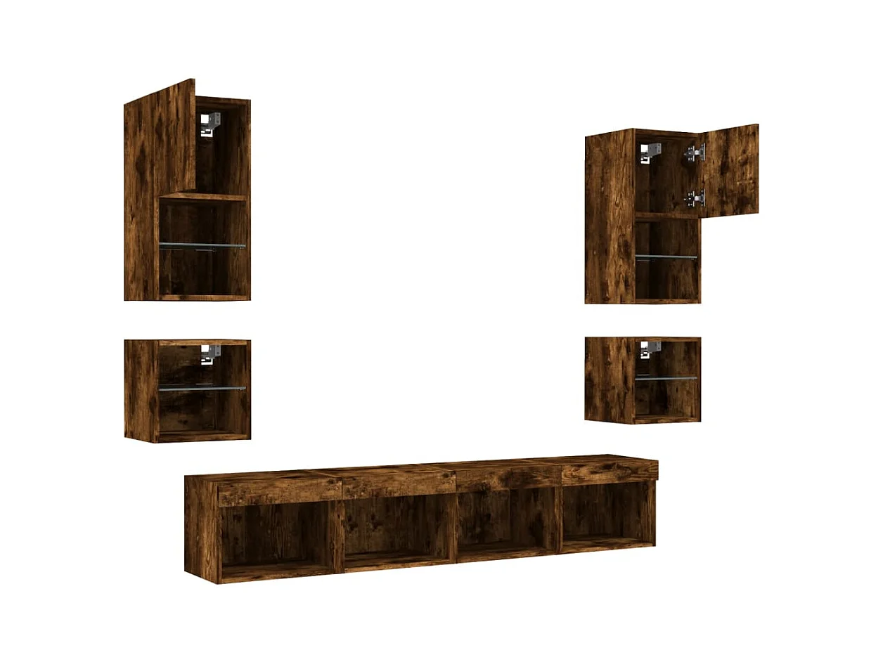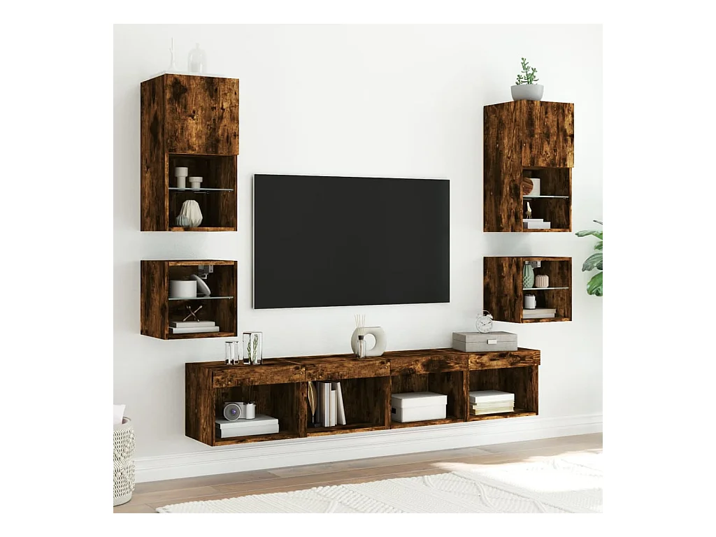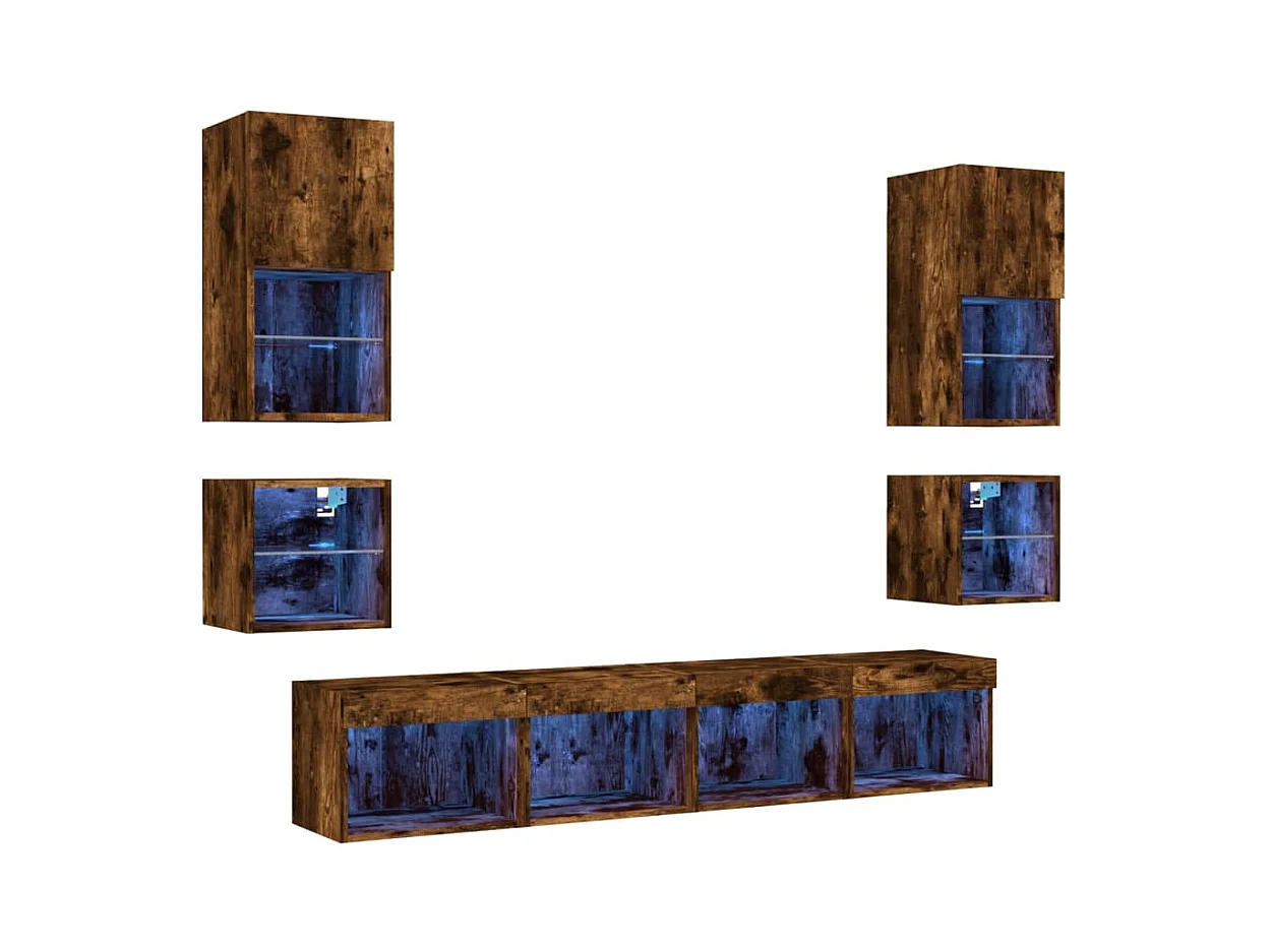 Muebles TV | Gabinetes de TV | Muebles de salón pared con LED 7 pzas madera ingeniería roble ahumado