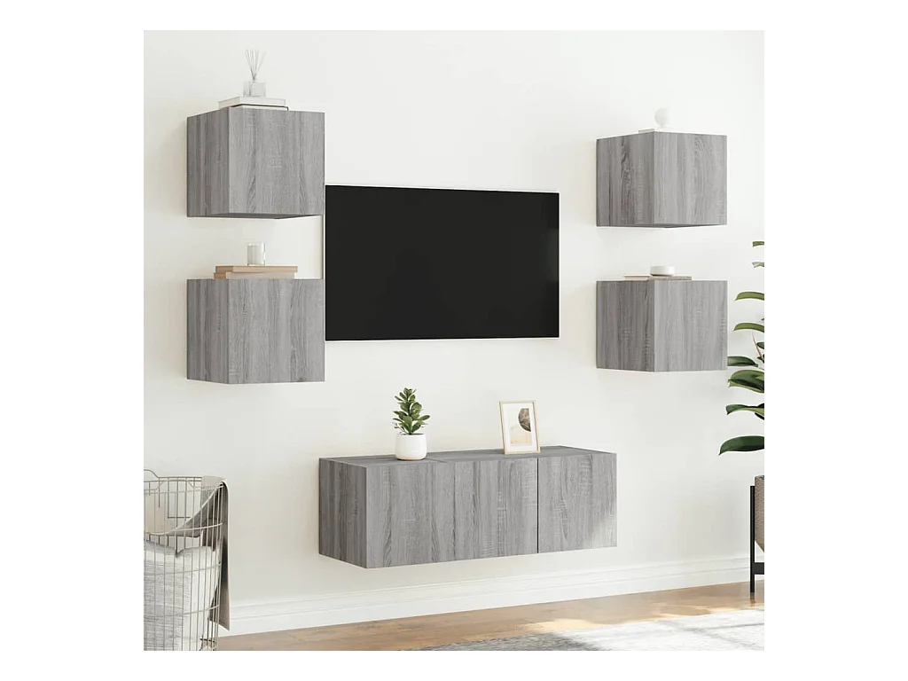 Muebles TV | Gabinetes de TV | Muebles de salón pared con luces LED 2 uds gris Sonoma 30,5x35x30 cm