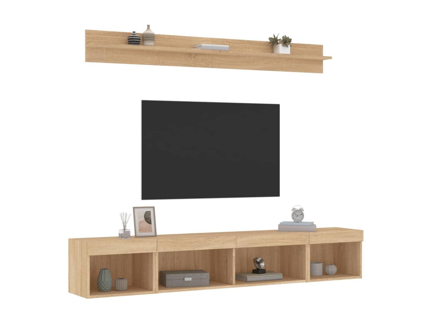Muebles TV pared con LED 5 pzas madera ingeniería roble Sonoma
