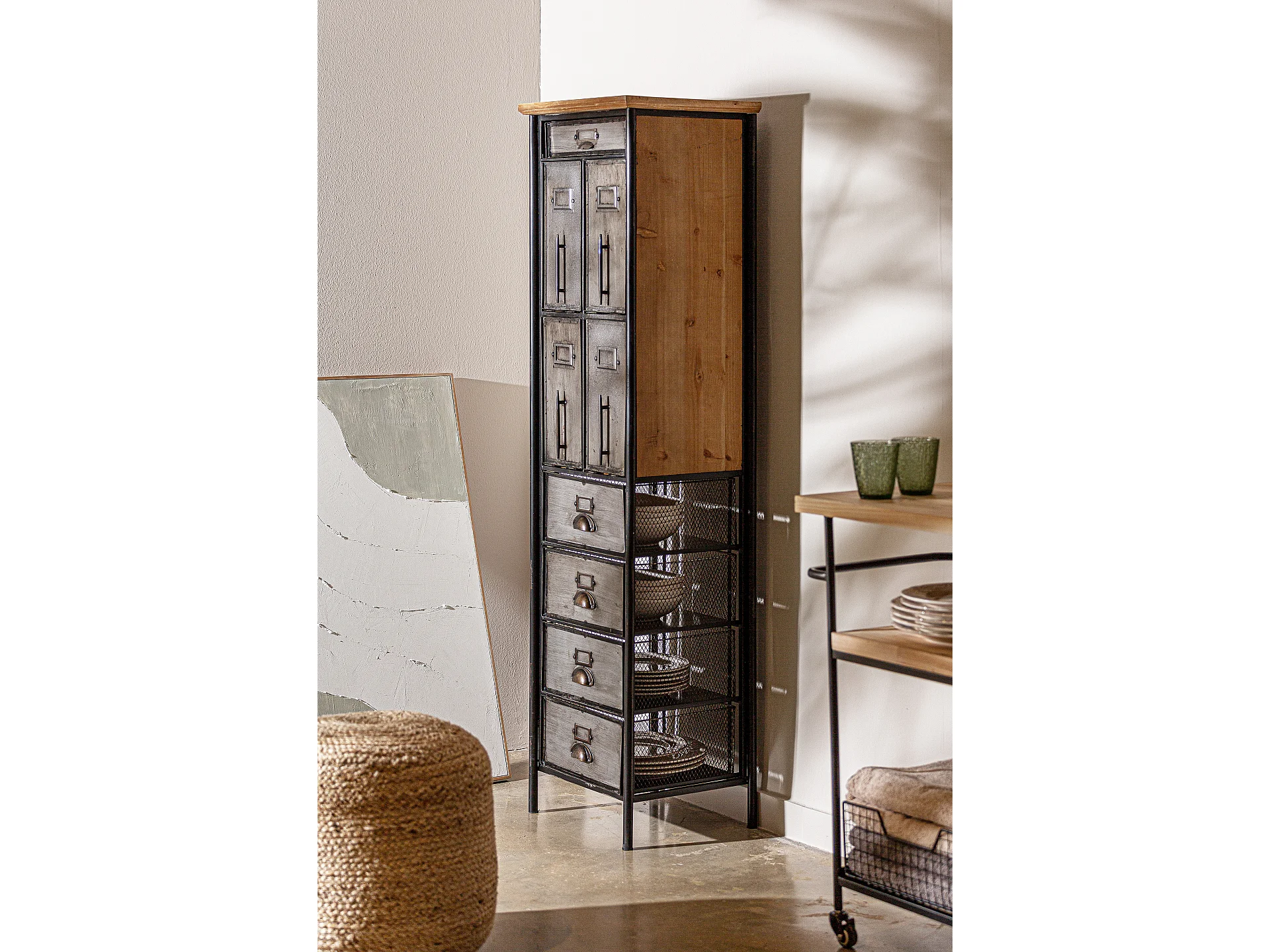 Multicajonera de hierro en color gris