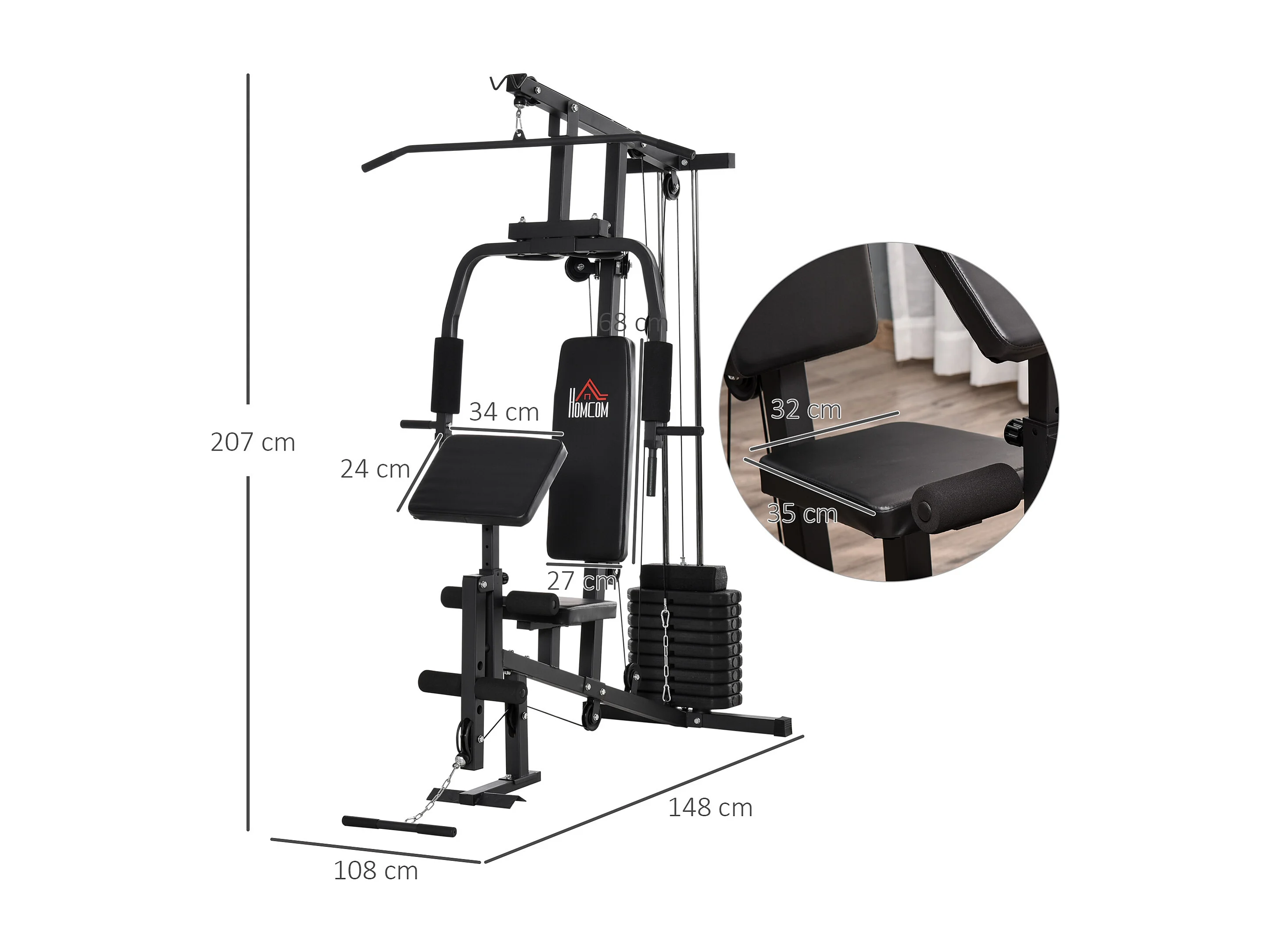 Multiestación negro 148x108x207 cm HOMCOM