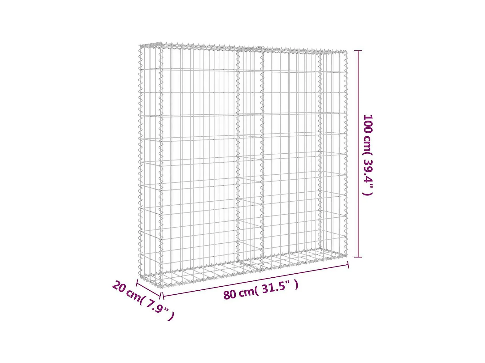 Mur en gabion-Panier de gabion avec couvercles Acier galvanisé 80x20x100 cm
