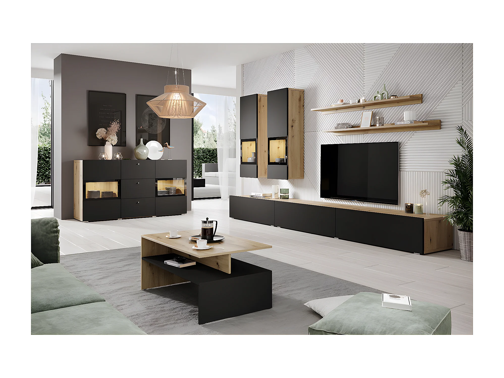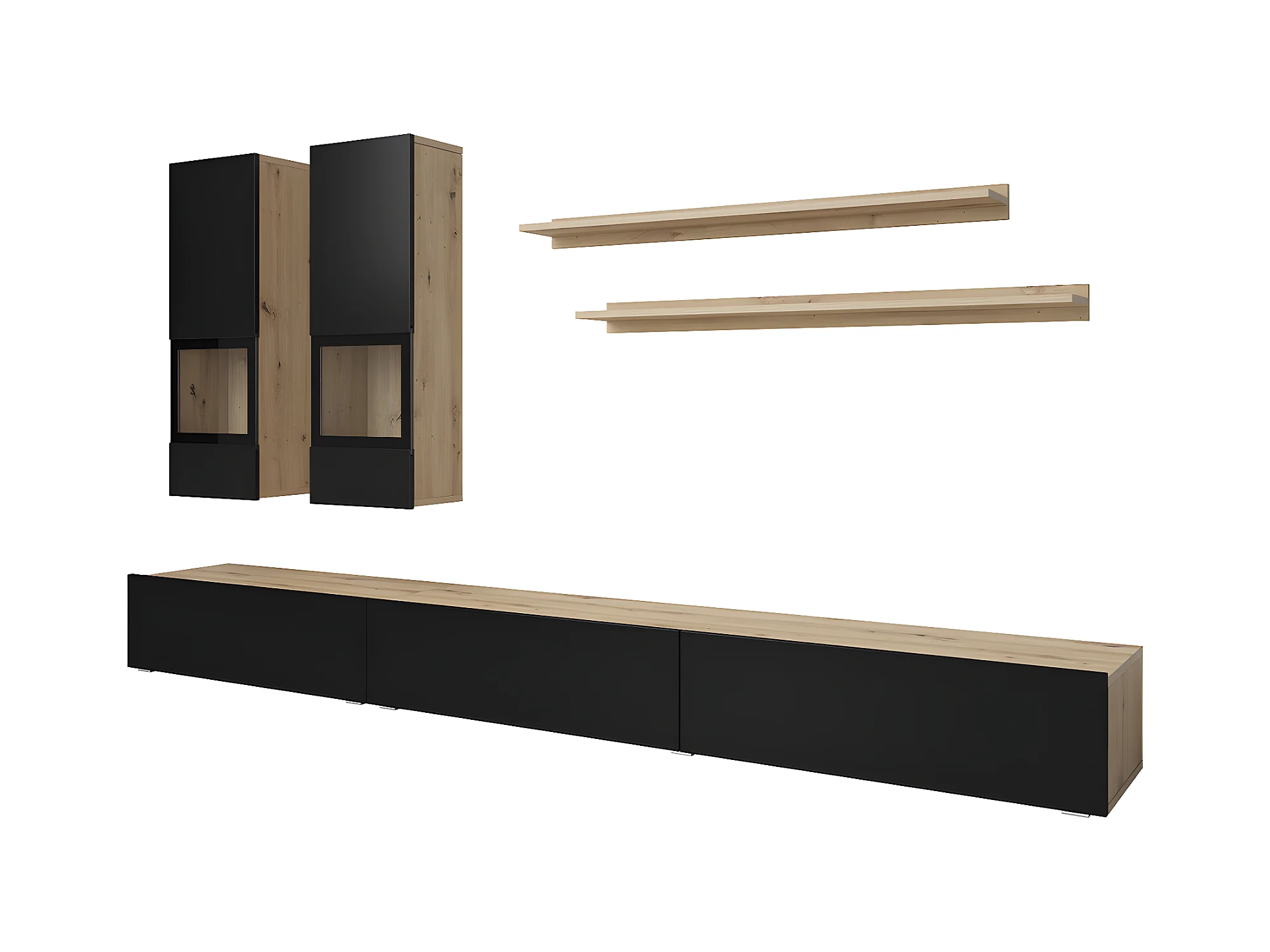 Muro TV 5 piezas con LED Sloan Negro y Madera