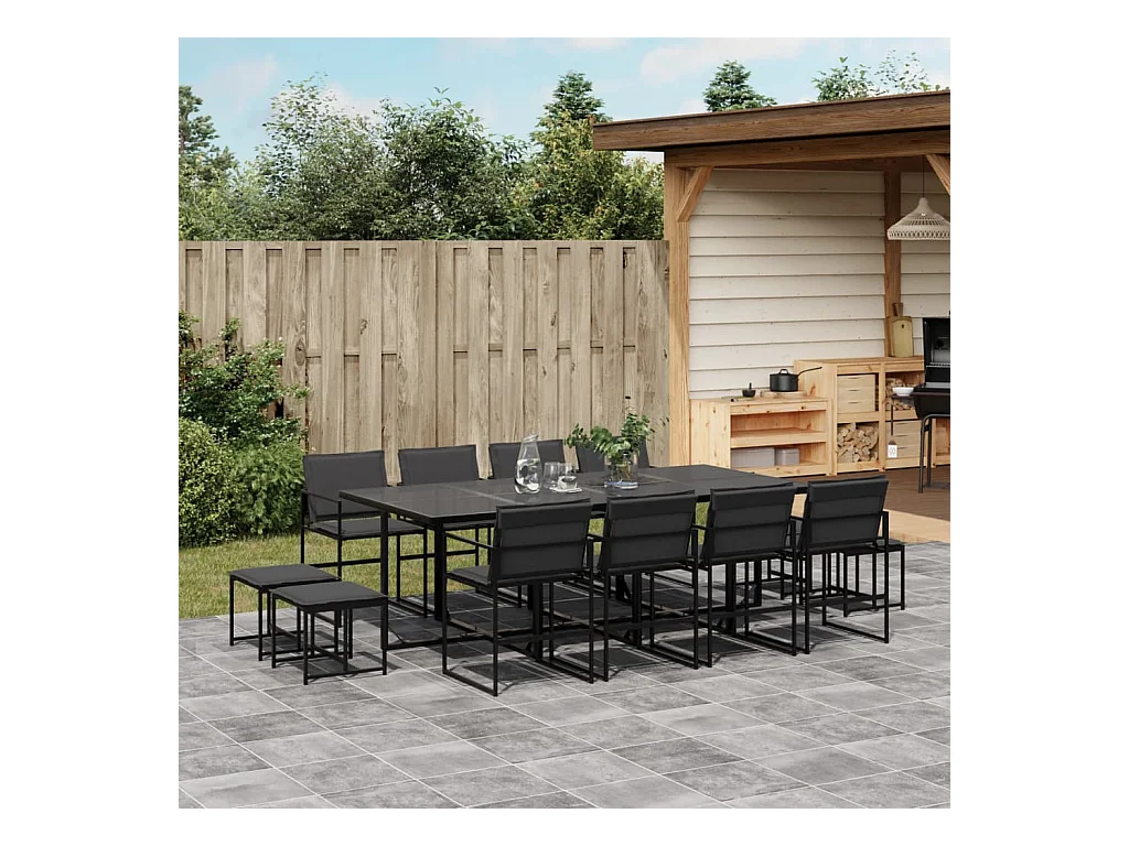 Myrena Juego de comedor de jardín 13 pzas con cojines textileno negro