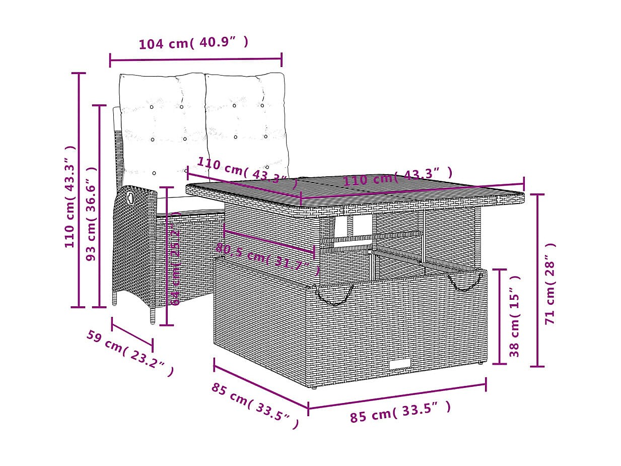 Myrvin Juego de comedor jardín 2 pzas con cojines ratán sintético gris