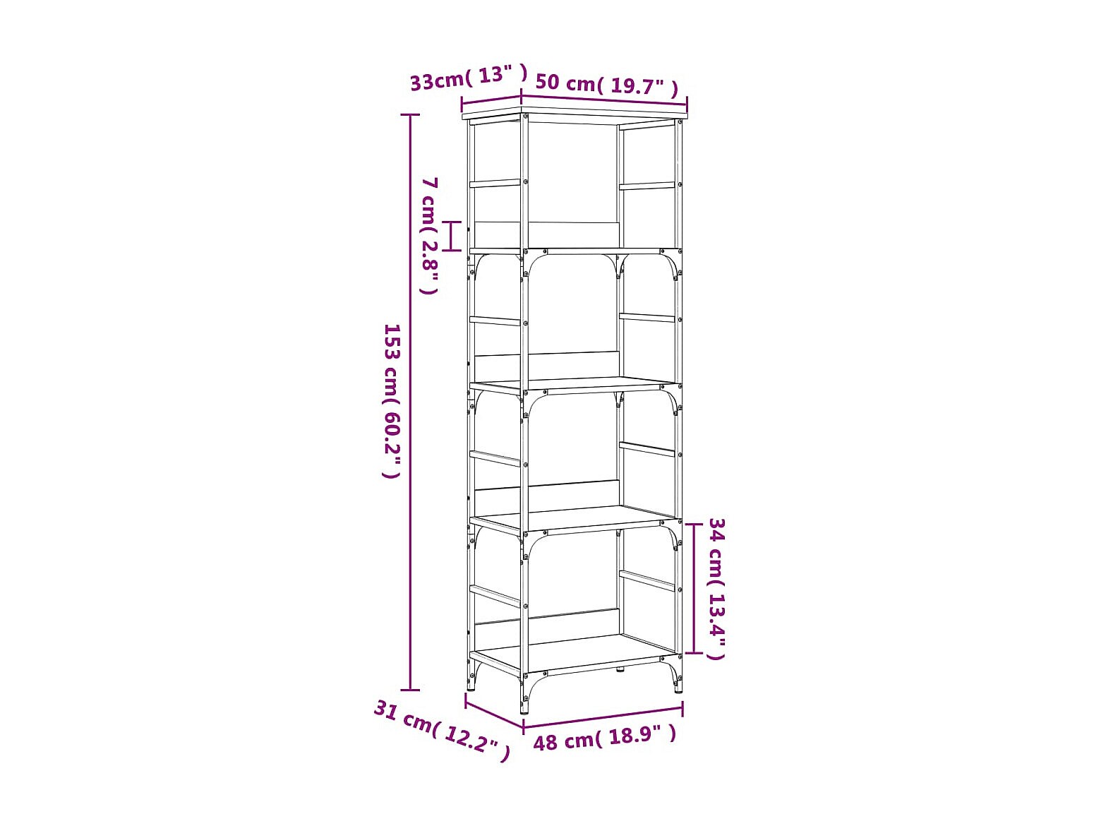 Namur Estantería de madera de ingeniería gris Sonoma 50x33x153 cm