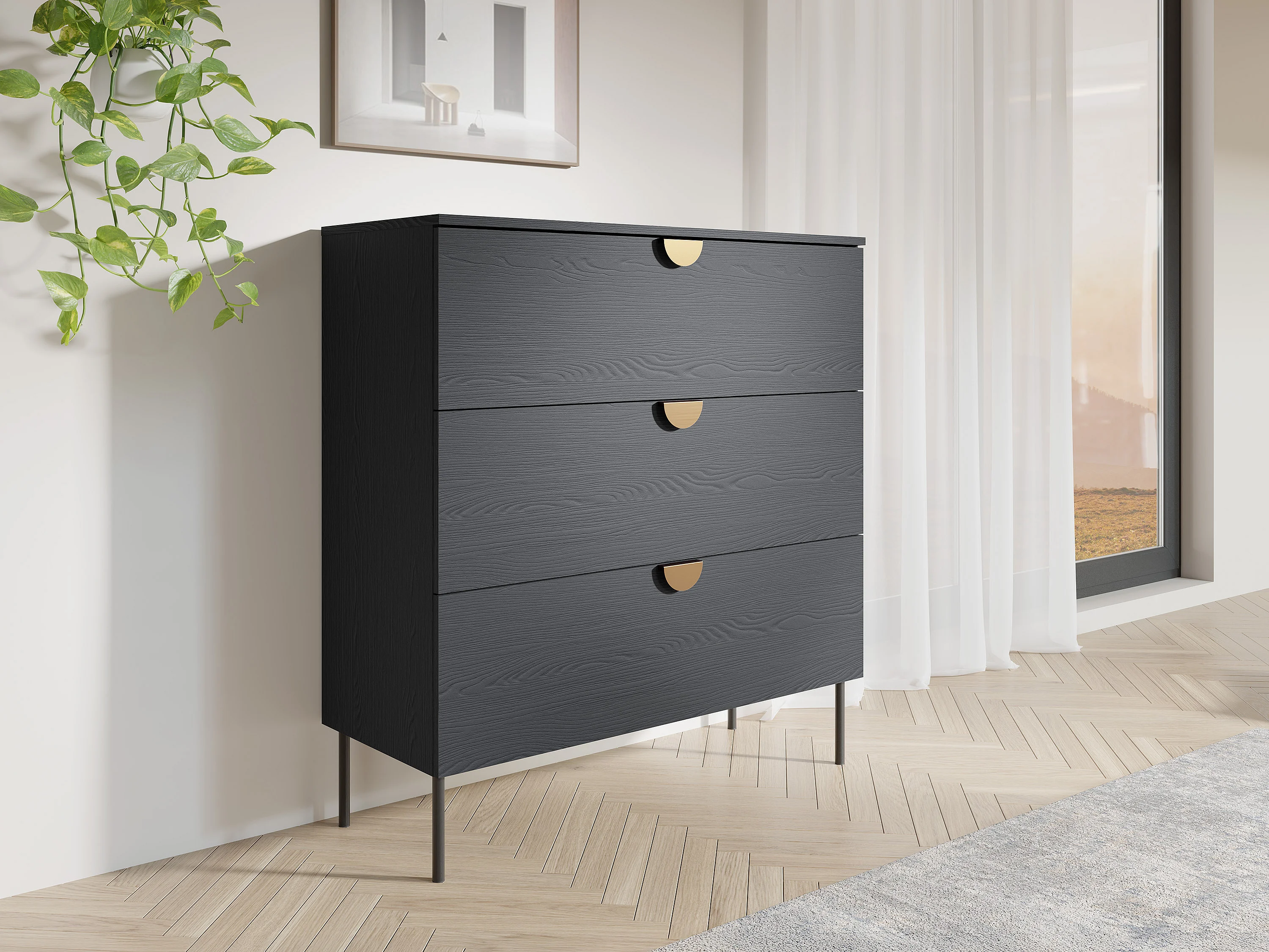 Cómoda con 3 cajones - Negro y dorado - NATANIEL