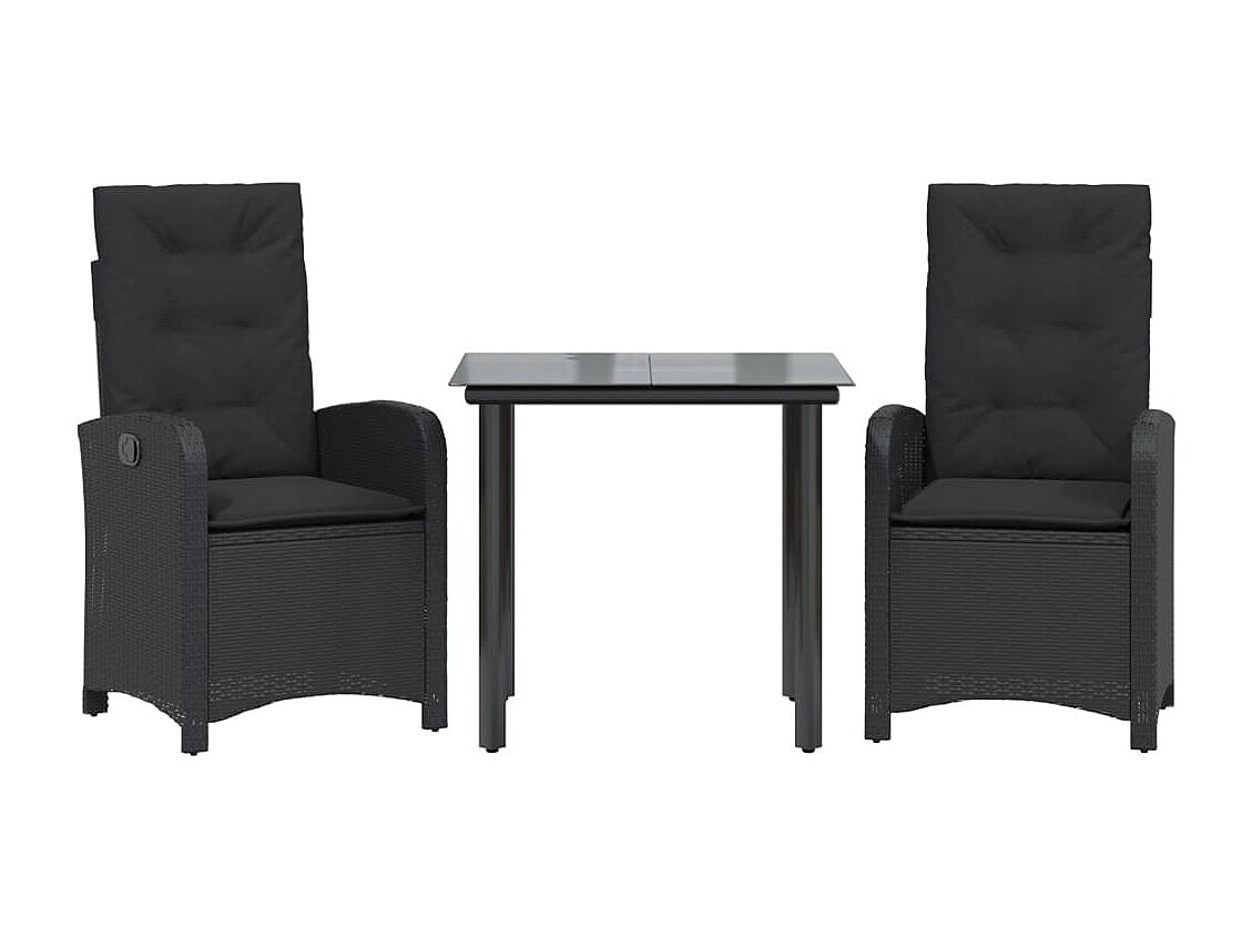 Necdet Set comedor de jardín 3 pzas con cojines ratán sintético negro