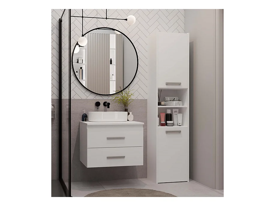 Estante de baño Mandeville 112, Blanco, Colocada, 98x64x50cm, Aglomerado laminado