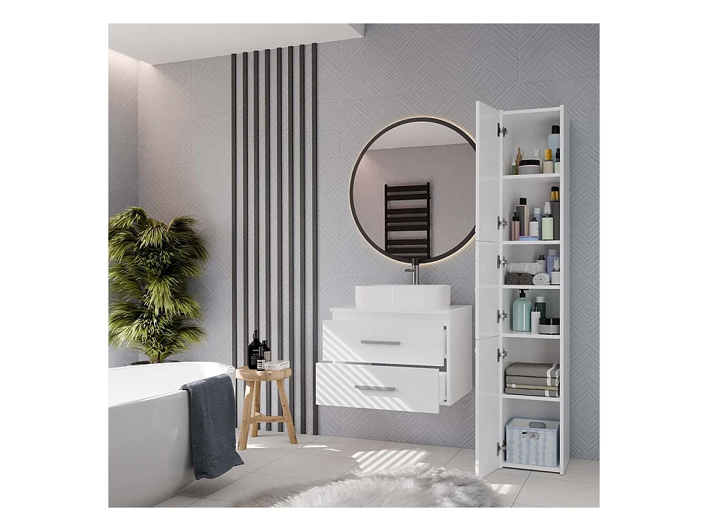 Armario de baño flotante estriado - blanco mate - Alt. 140 cm - ZEVINI