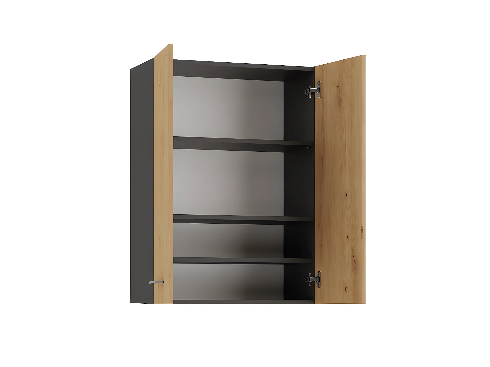 Armario de baño colgante horizontal de 80 cm con estantes en roble craft y negro.