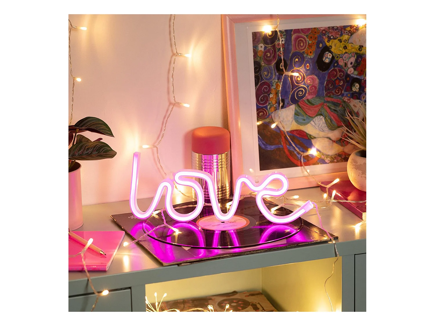 Neón LED Love con Batería Rosa