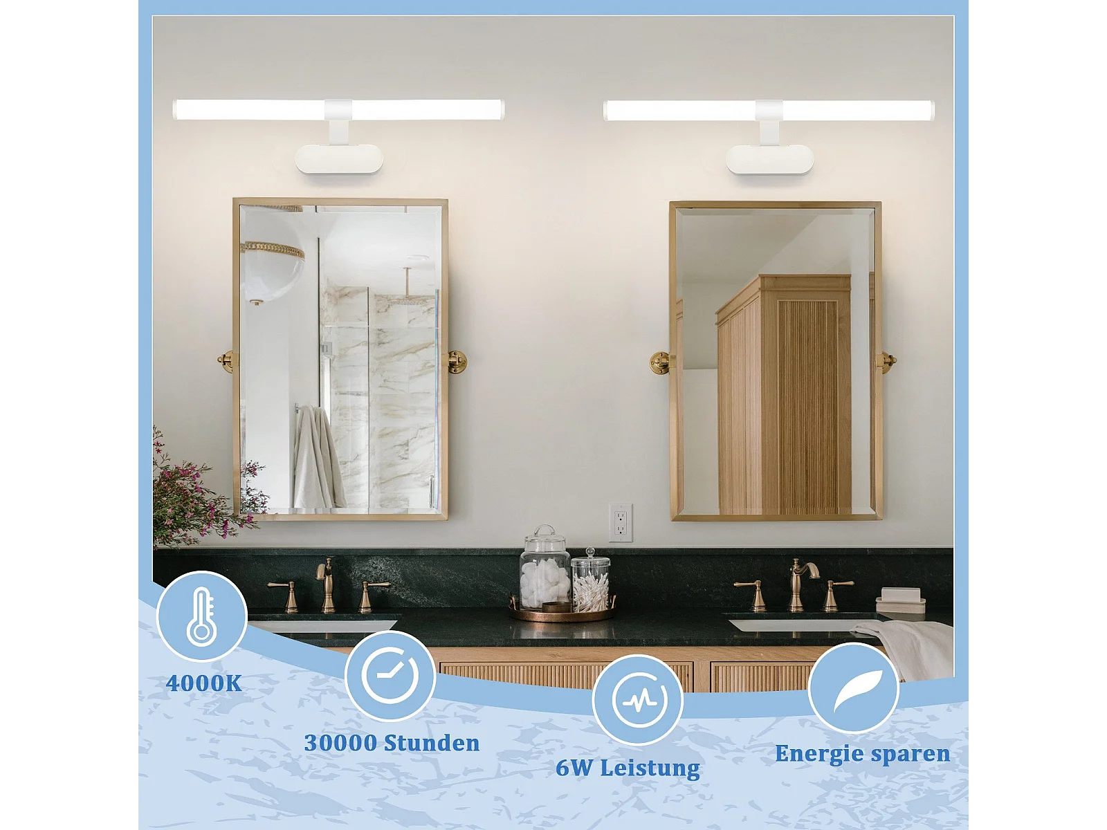 NETTLIFE - Aplique LED de pared para baño (2 unidades), cromo moderno, 6 W, 30 cm, resistente al agua, IP44, blanco neutro 4000 K