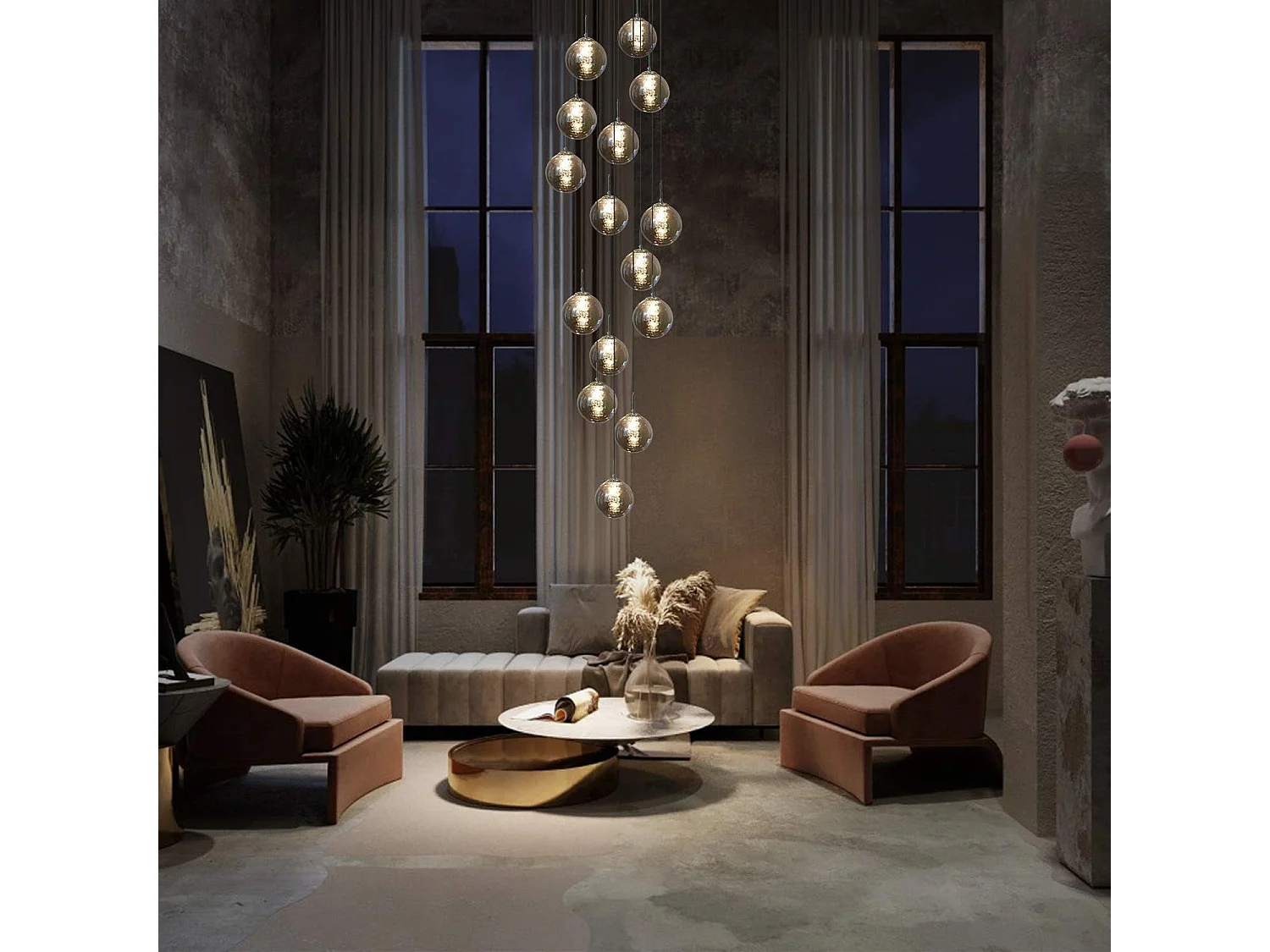 NETTLIFE. Colgante para mesa de comedor de altura ajustable. Colgante de vidrio. -Lámpara colgante. Moderno para jaula de escalera. Lustrera de 15 llamas.