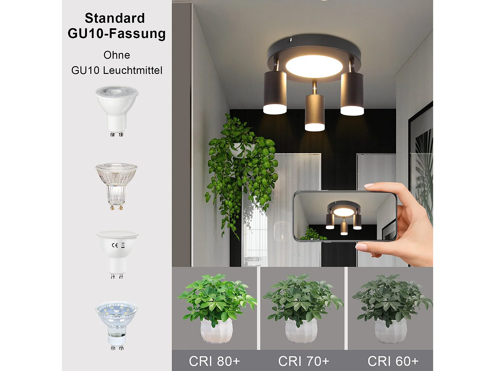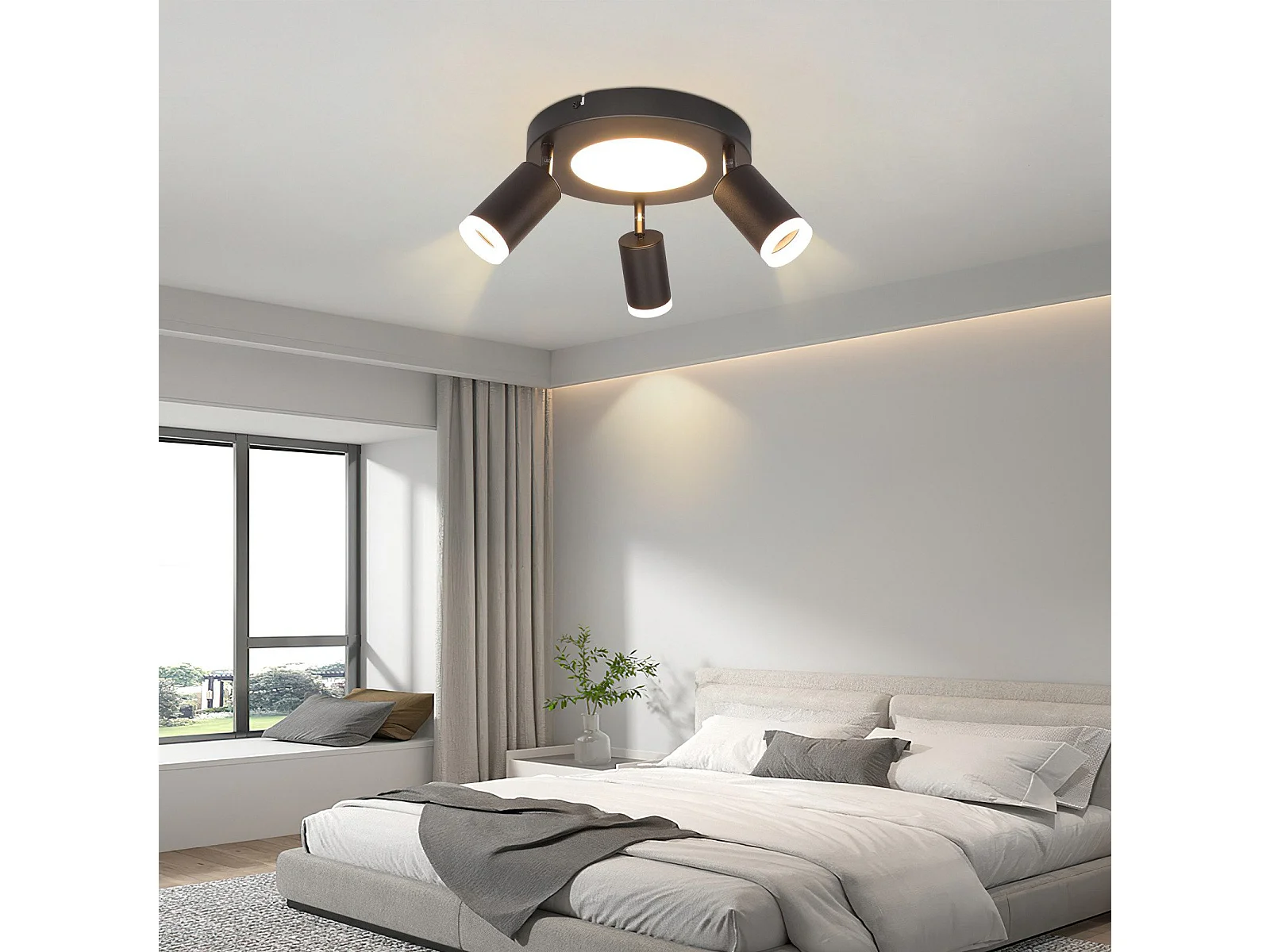 NETTLIFE Foco de techo 3 focos GU10 dormitorio 3000k 20W lámpara de cocina negro blanco cálido, regulable