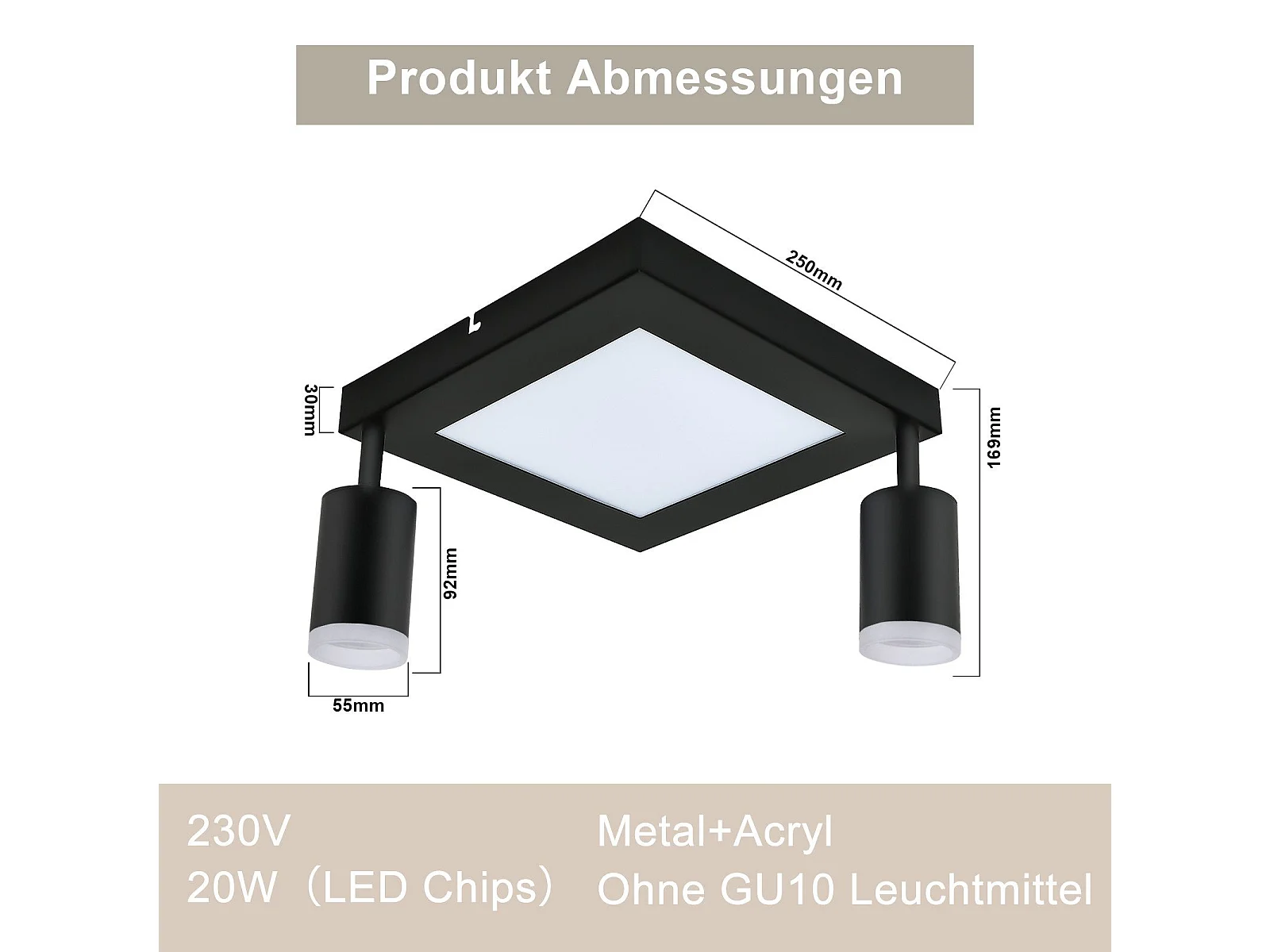 NETTLIFE Foco de techo cuadrado GU10 3000k blanco cálido 20W Lámpara de dormitorio ajustable 350° Blanco cálido