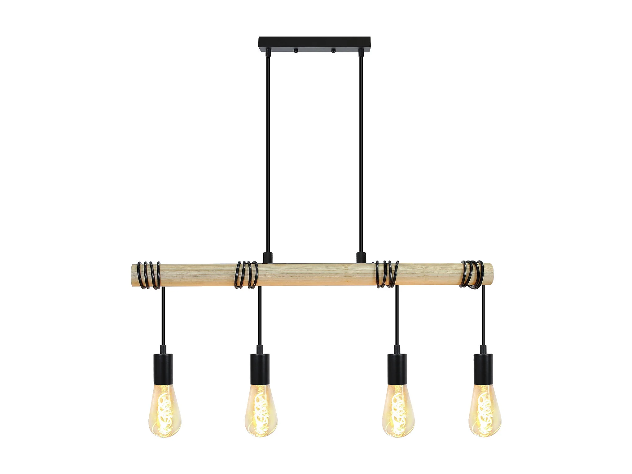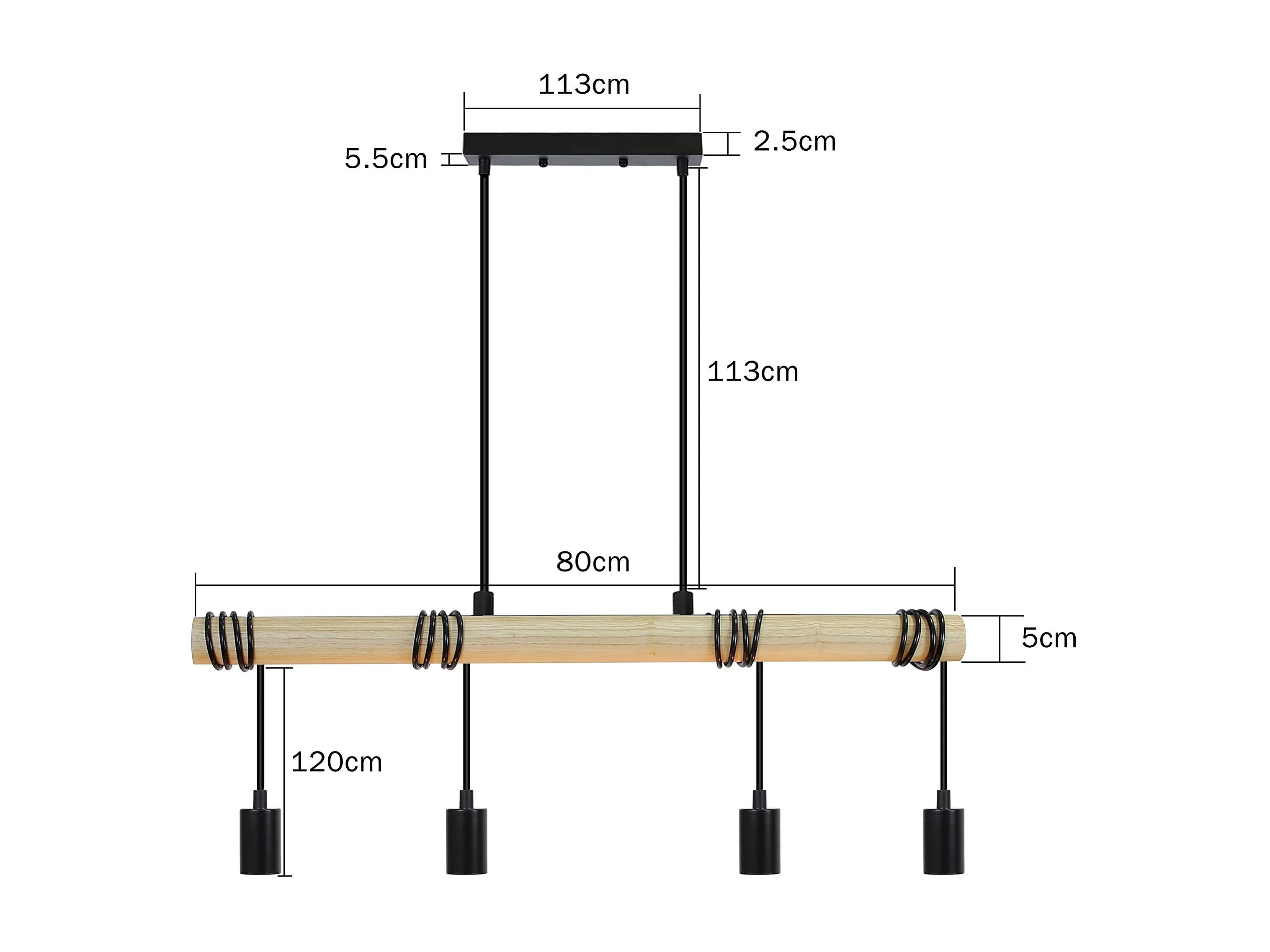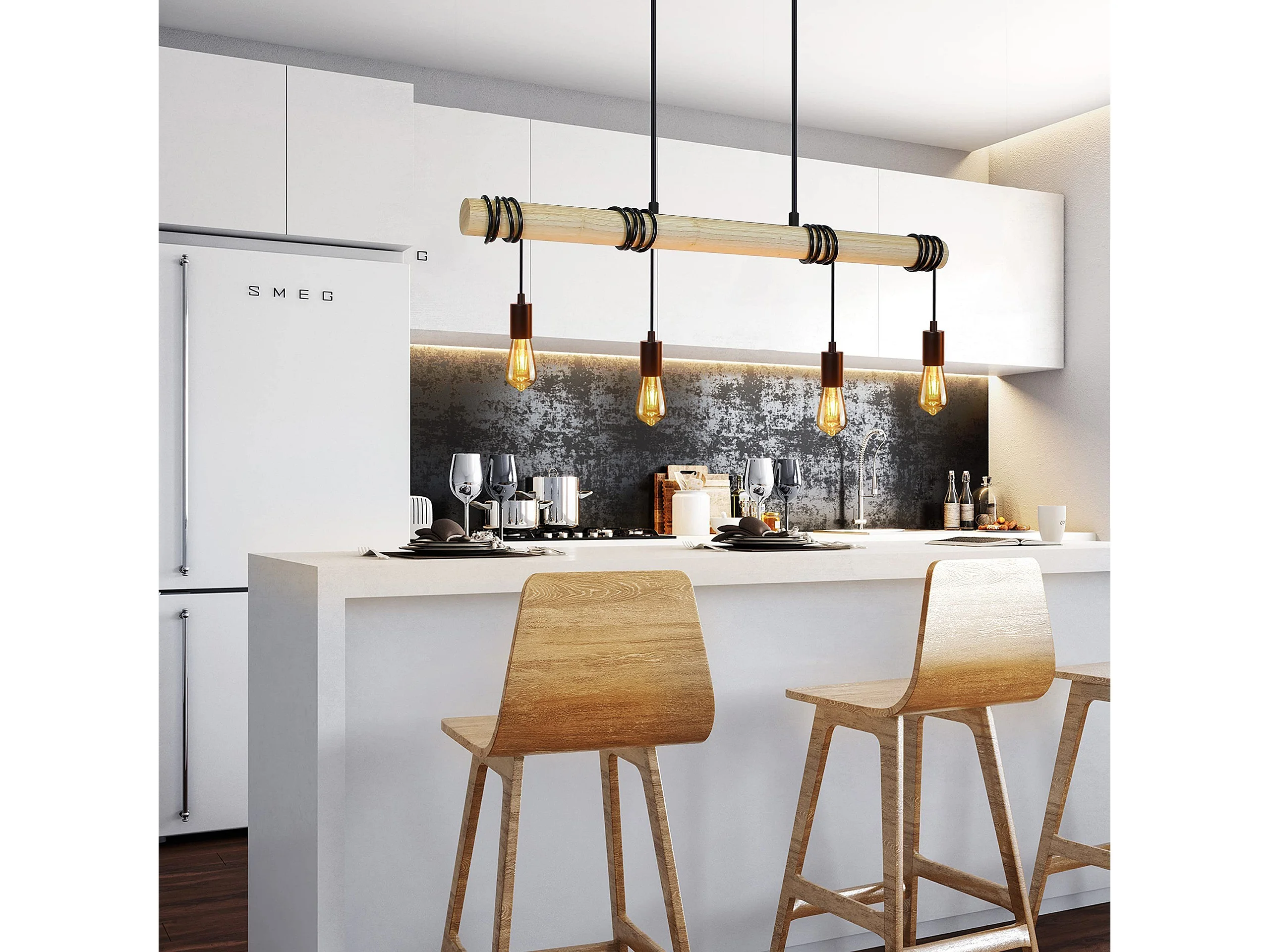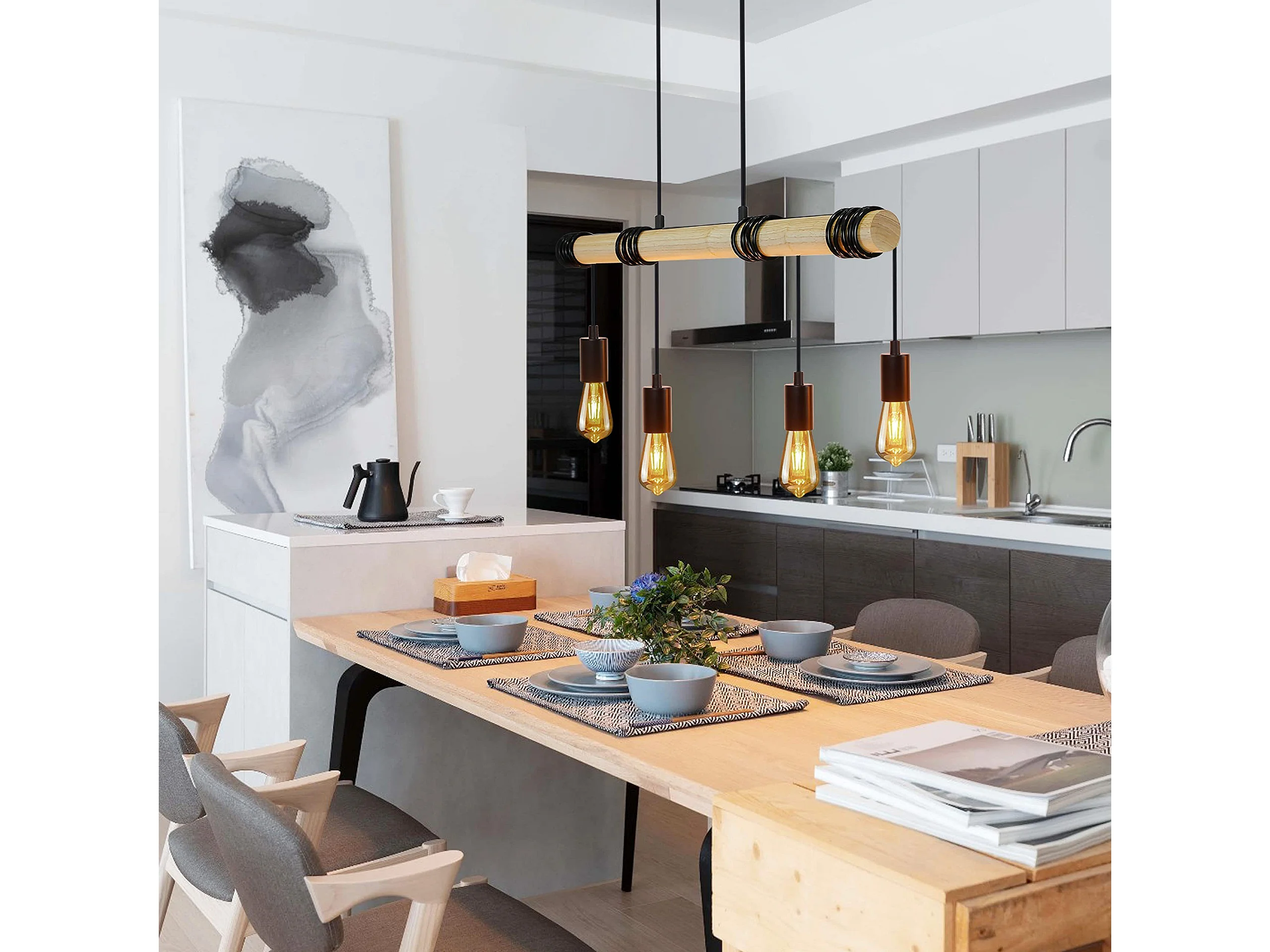 NETTLIFE Lámpara colgante de madera negra Diam.113cm E27 vintage retro 4 llamas lámpara de cocina industrial para cocina sala de estar