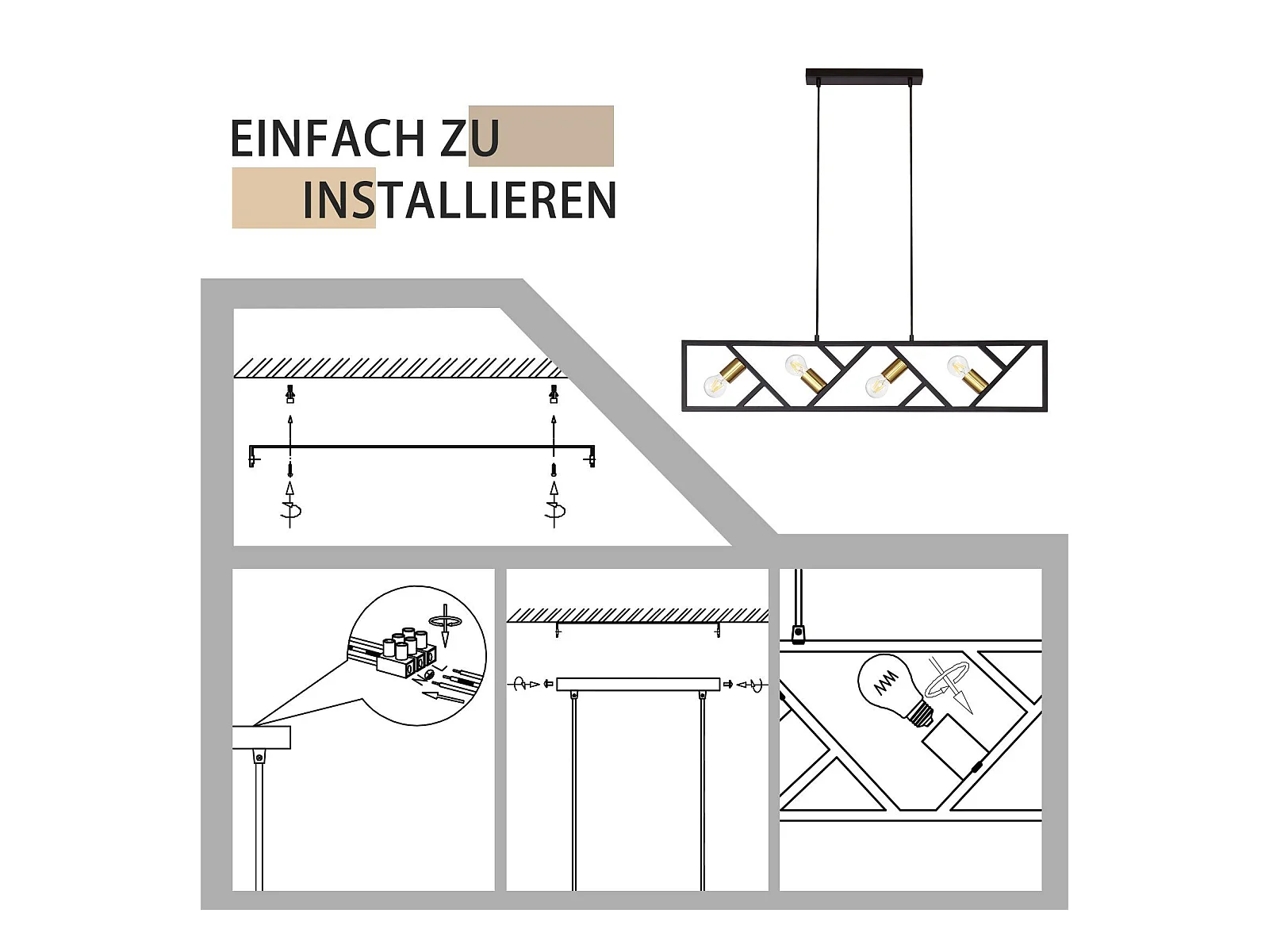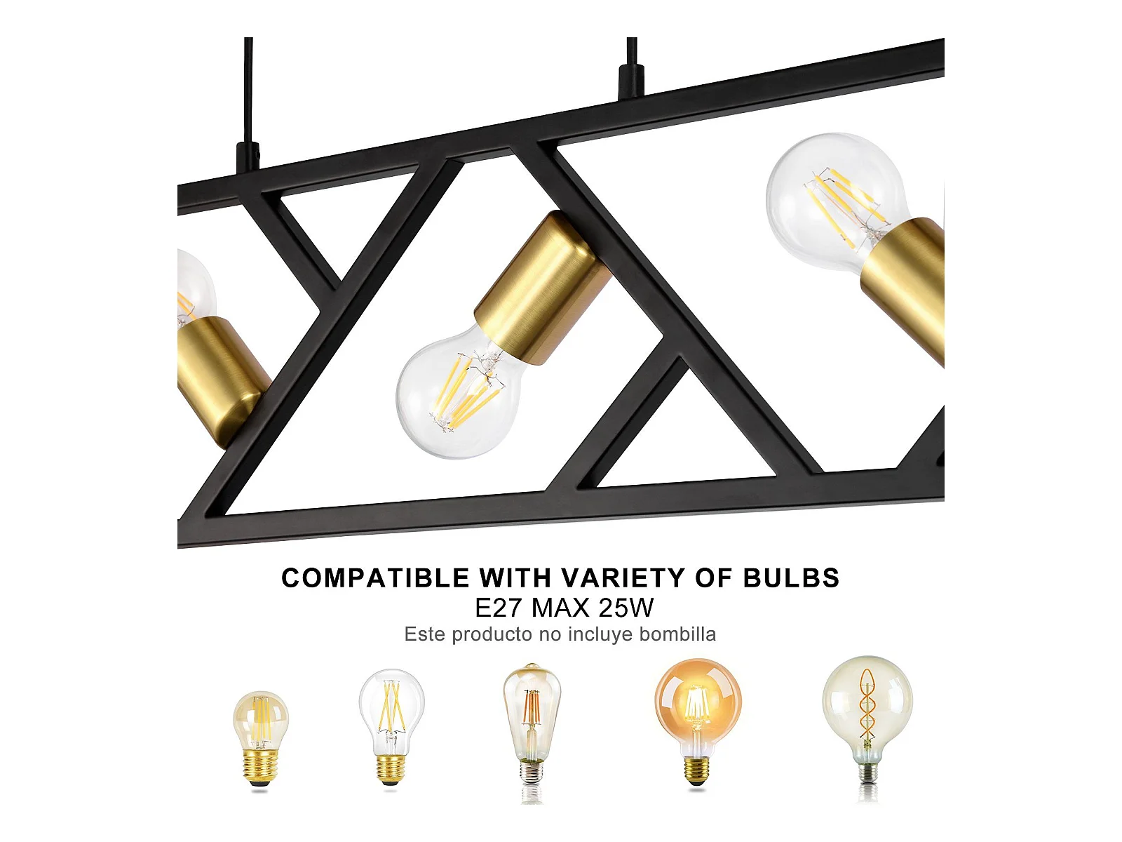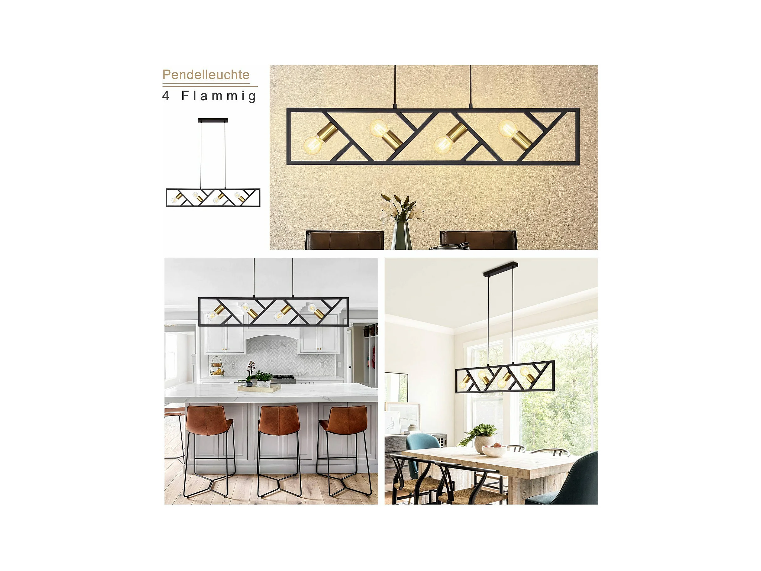 NETTLIFE Lámpara Colgante Vintage Negro y Dorado 4 llamas E27 Metal Diam.100CM Lámpara Retro de Comedor para Sala Cocina