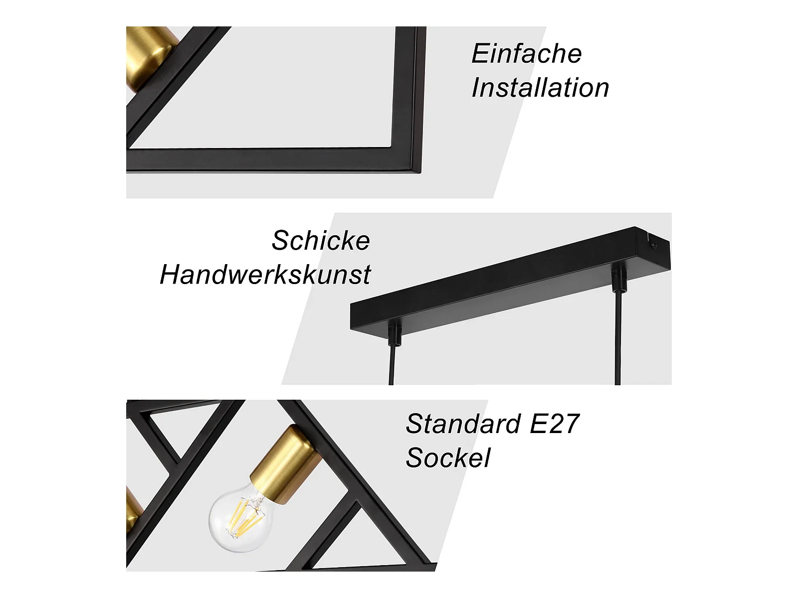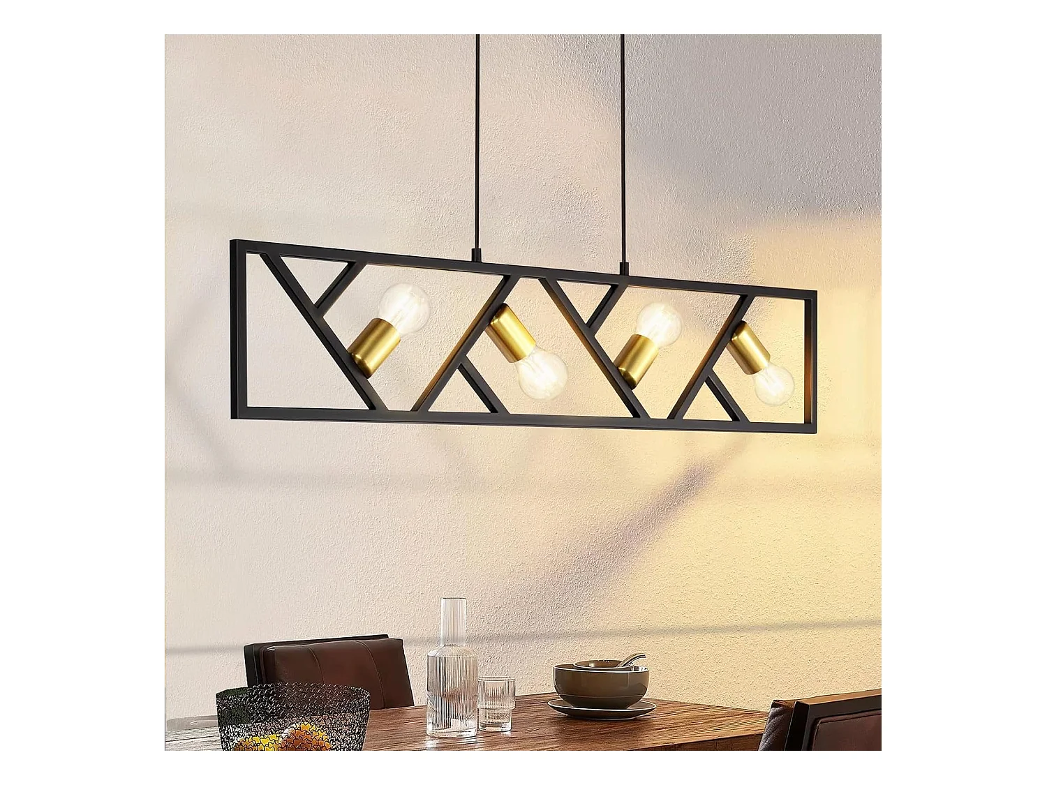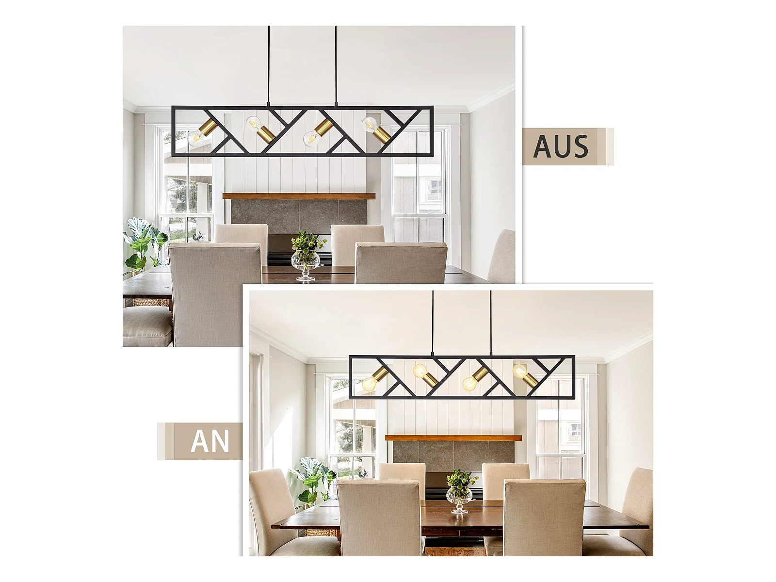 NETTLIFE Lámpara Colgante Vintage Negro y Dorado 4 llamas E27 Metal Diam.100CM Lámpara Retro de Comedor para Sala Cocina