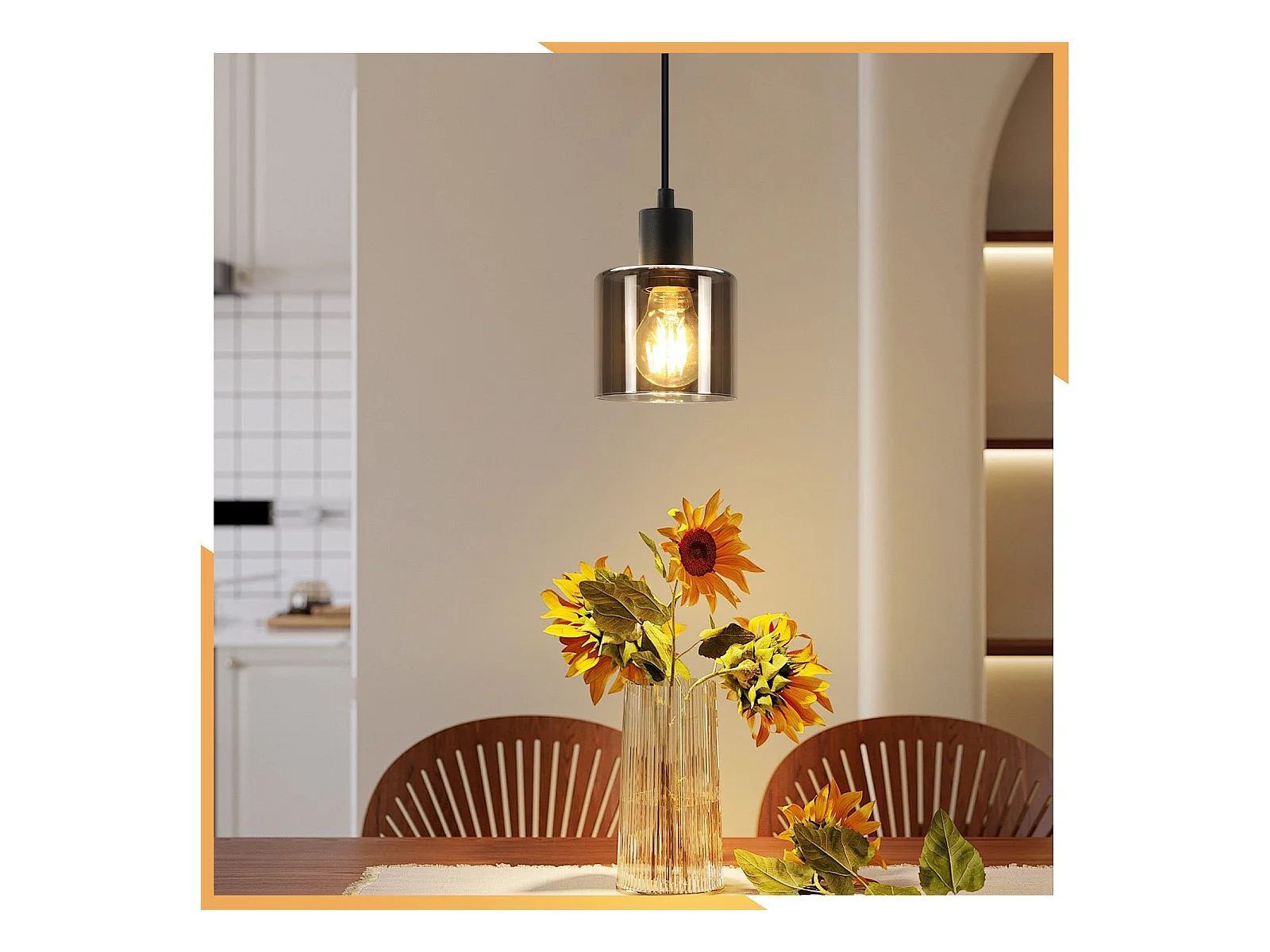 NETTLIFE Lámpara colgante E27 Vintage negro Diam.12 cm madera metal con pantalla de cristal para comedor cocina salón dormitorio