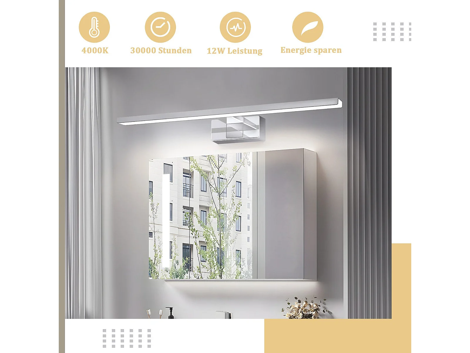 NETTLIFE Lámpara de espejo de baño LED Lámpara de espejo de pared de 12W 4000K 60cm