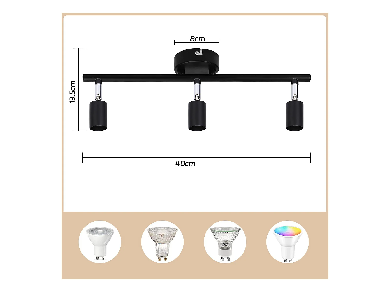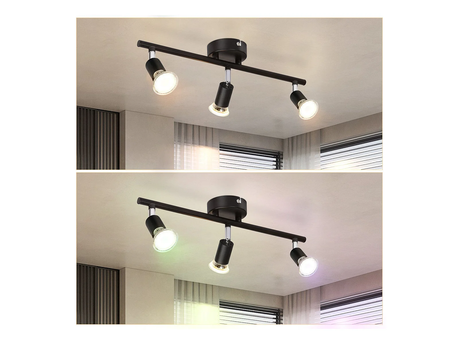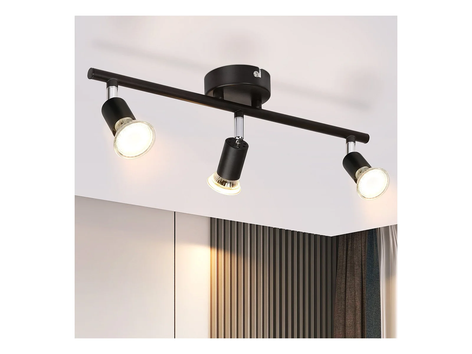 NETTLIFE Lámpara de techo con 3 focos de madera GU10 negros, orientable 330° para salón, dormitorio, cocina, habitación infantil sin bombilla