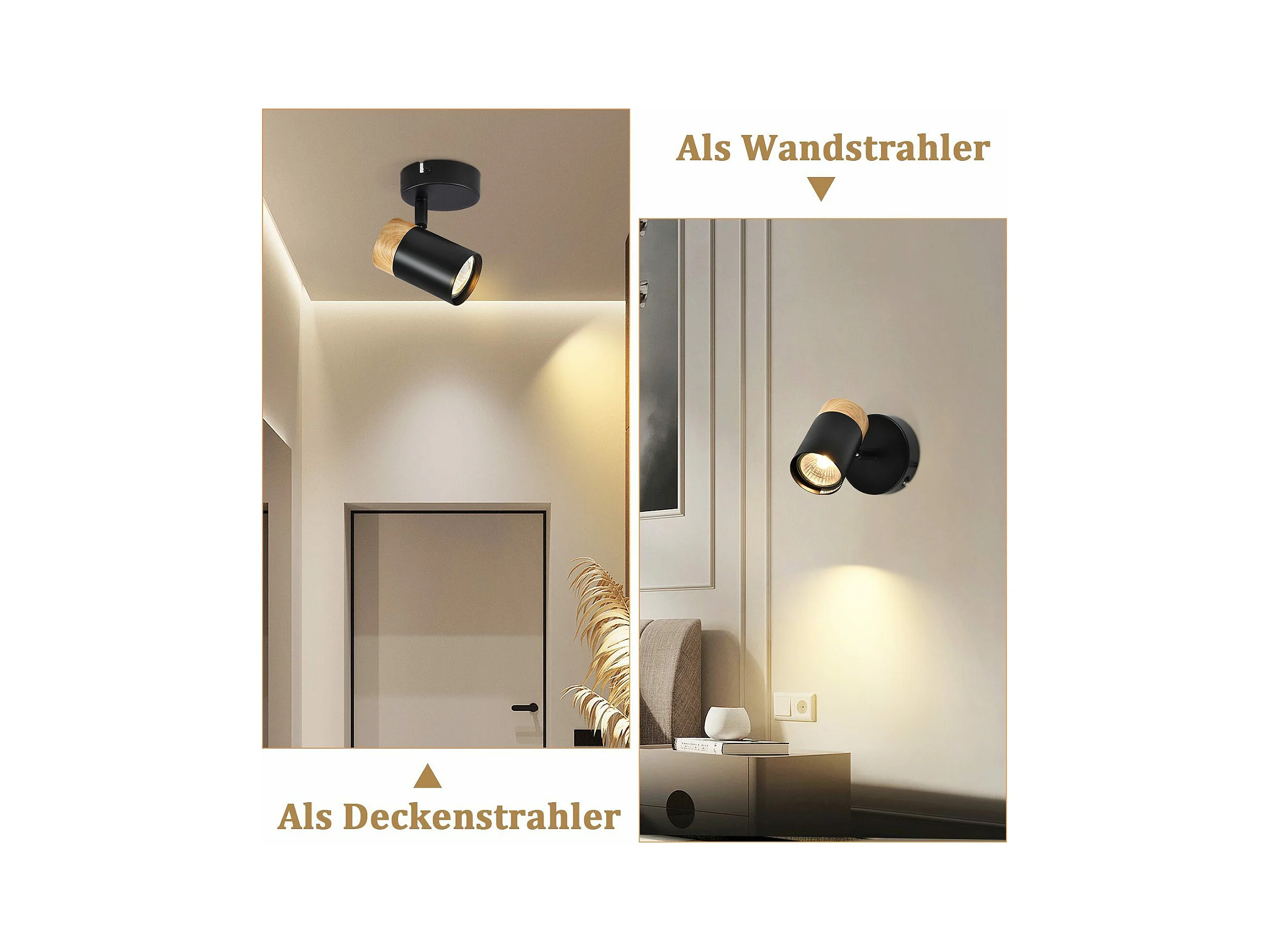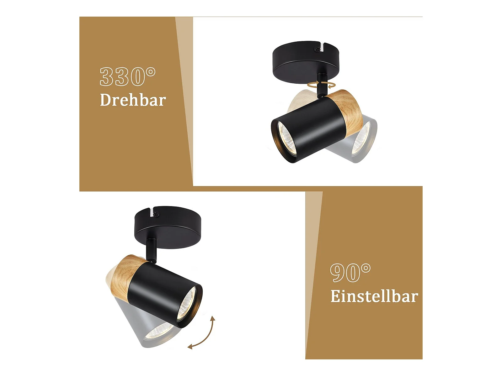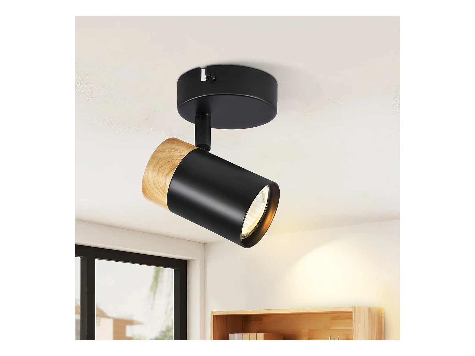 NETTLIFE Foco de Techo LED Focos de Madera GU10 Lámpara Giratoria de 330° Negro Vintage Interior para Pasillo Sala de Estar Dormitorio Cocina