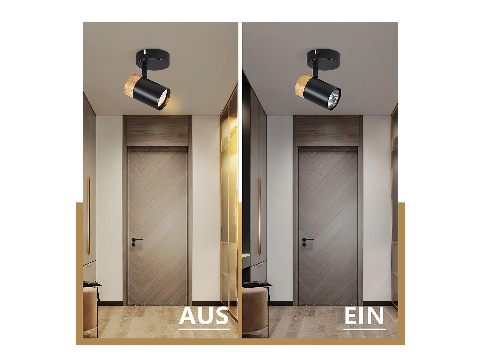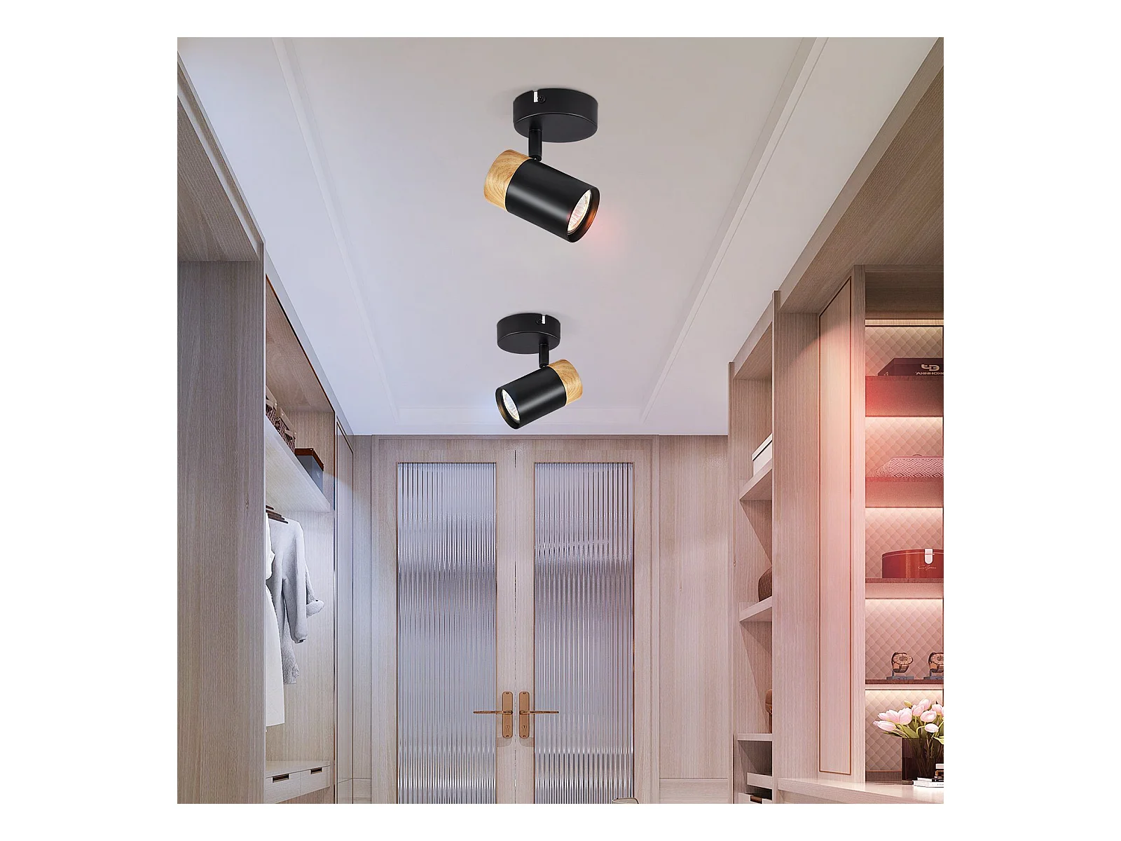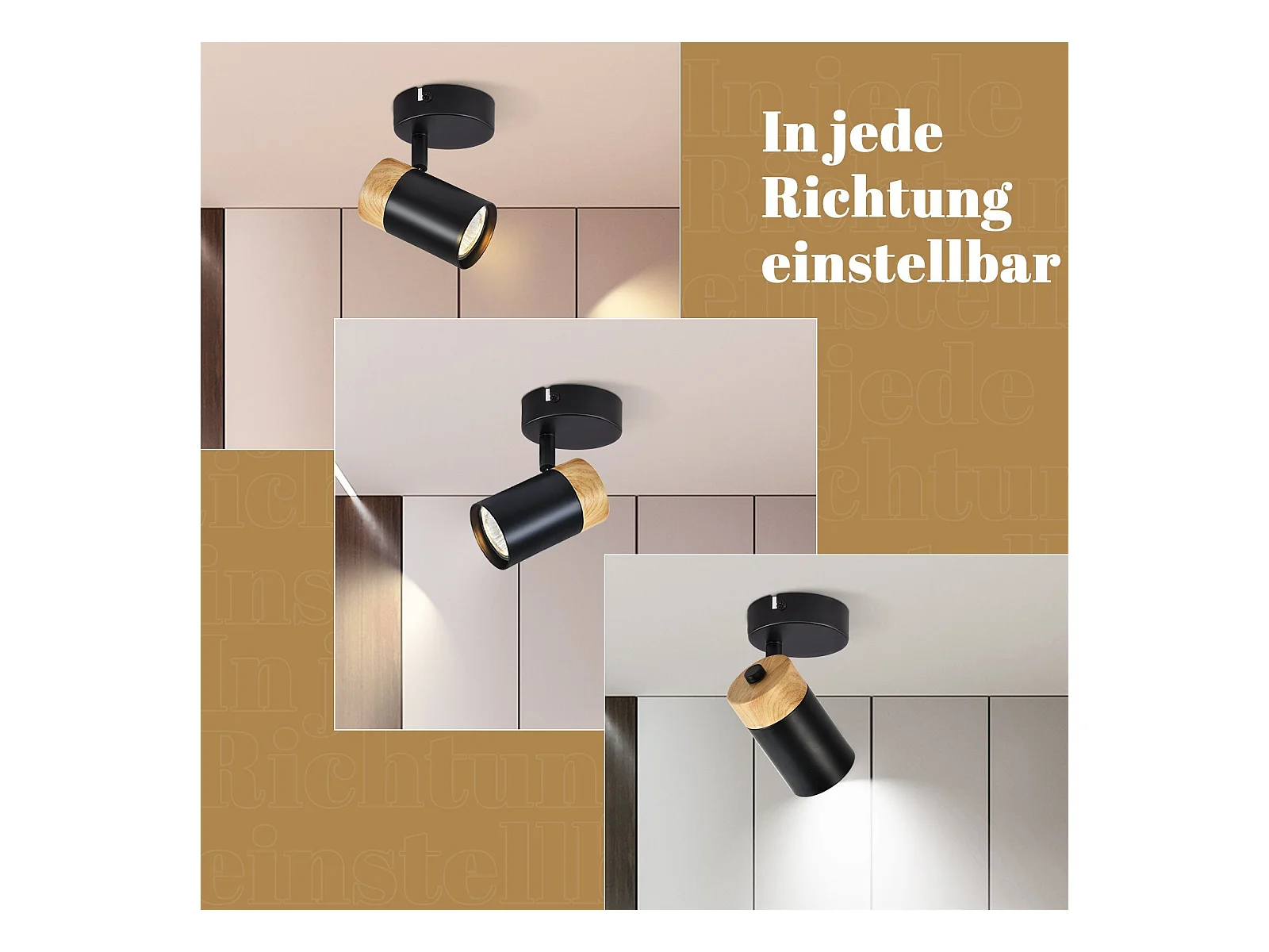 NETTLIFE Foco de Techo LED Focos de Madera GU10 Lámpara Giratoria de 330° Negro Vintage Interior para Pasillo Sala de Estar Dormitorio Cocina
