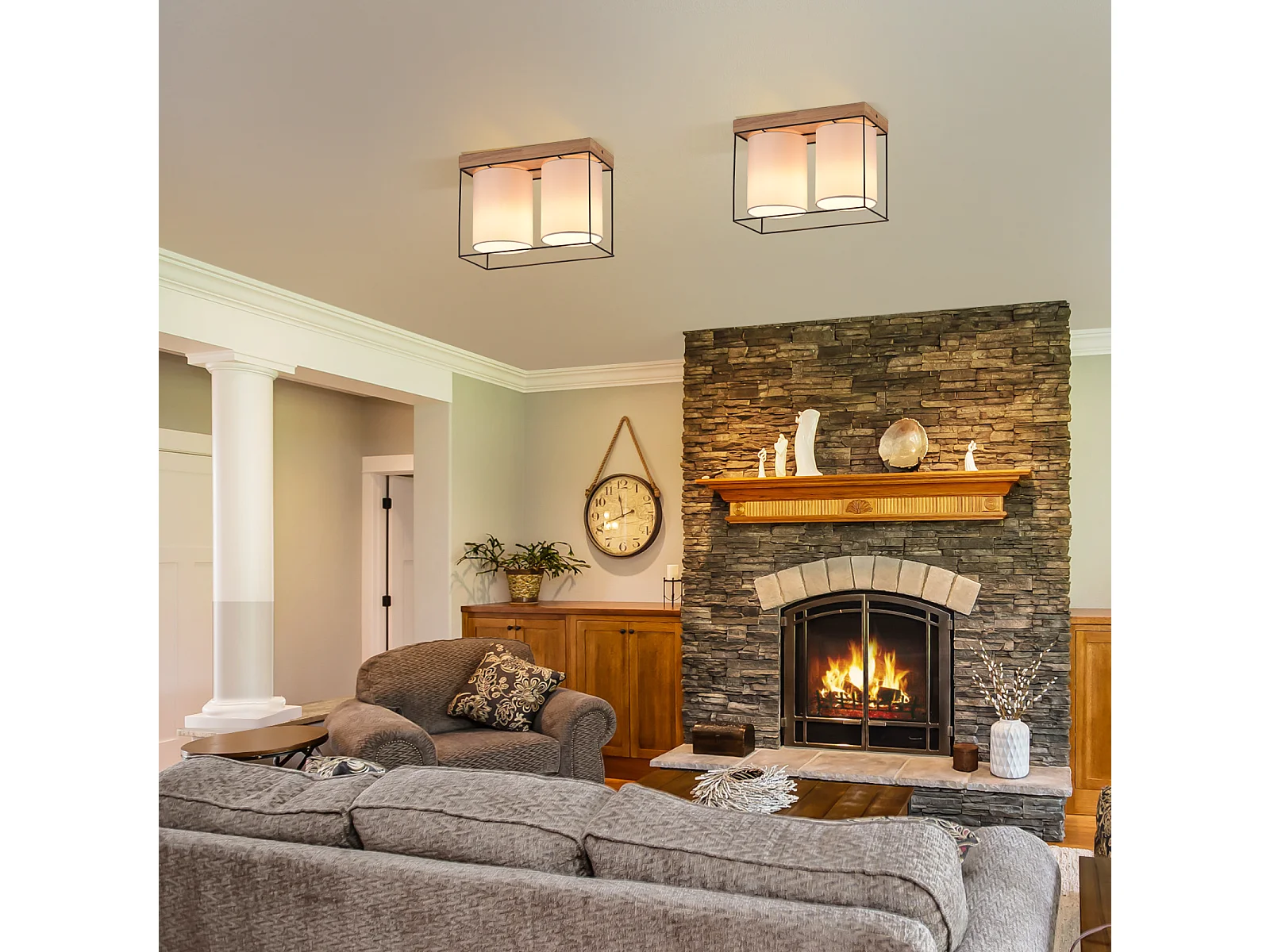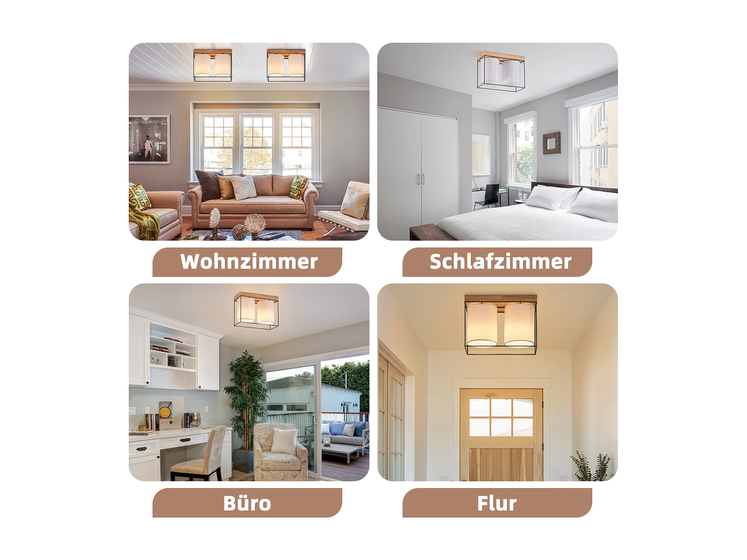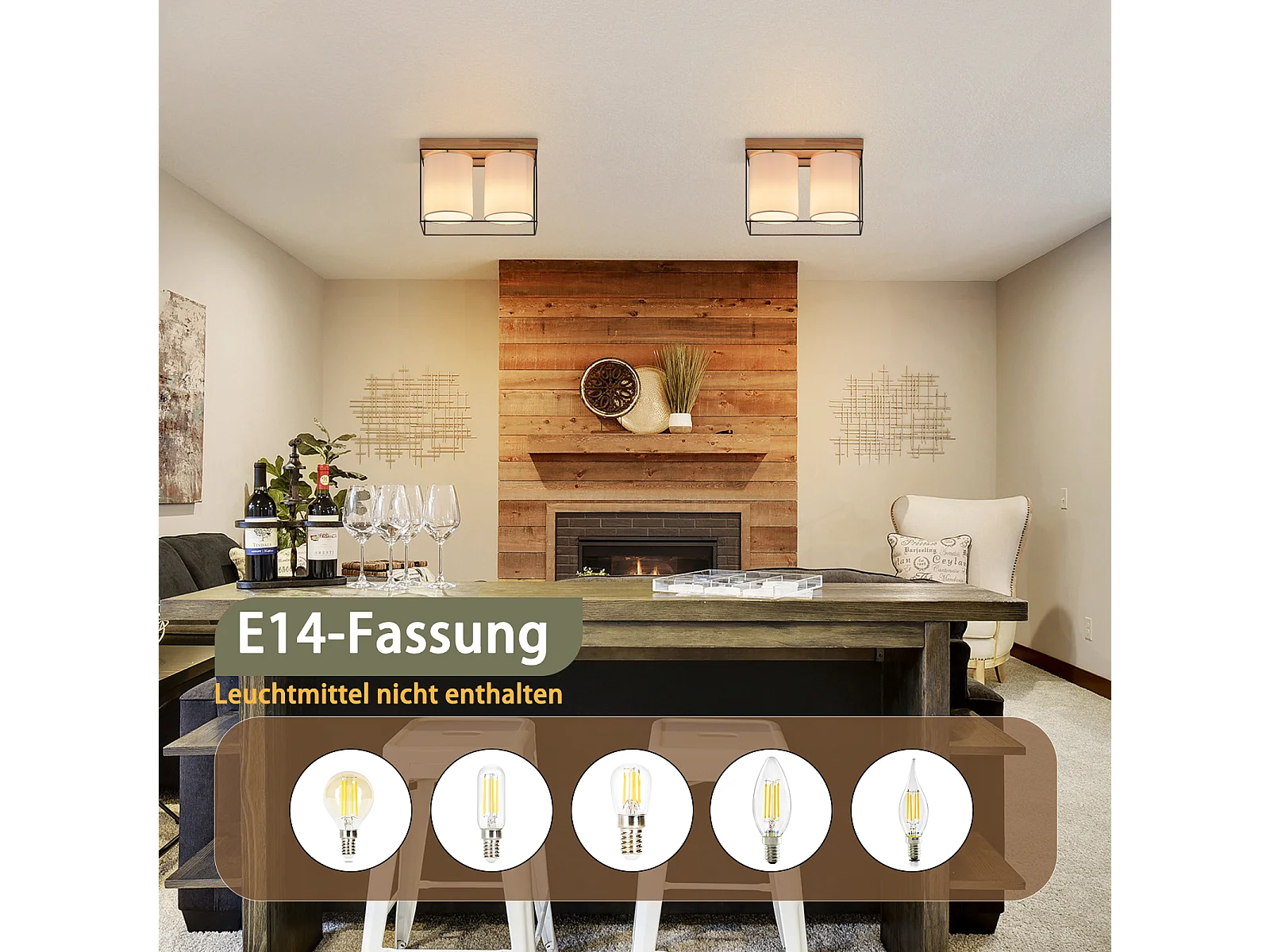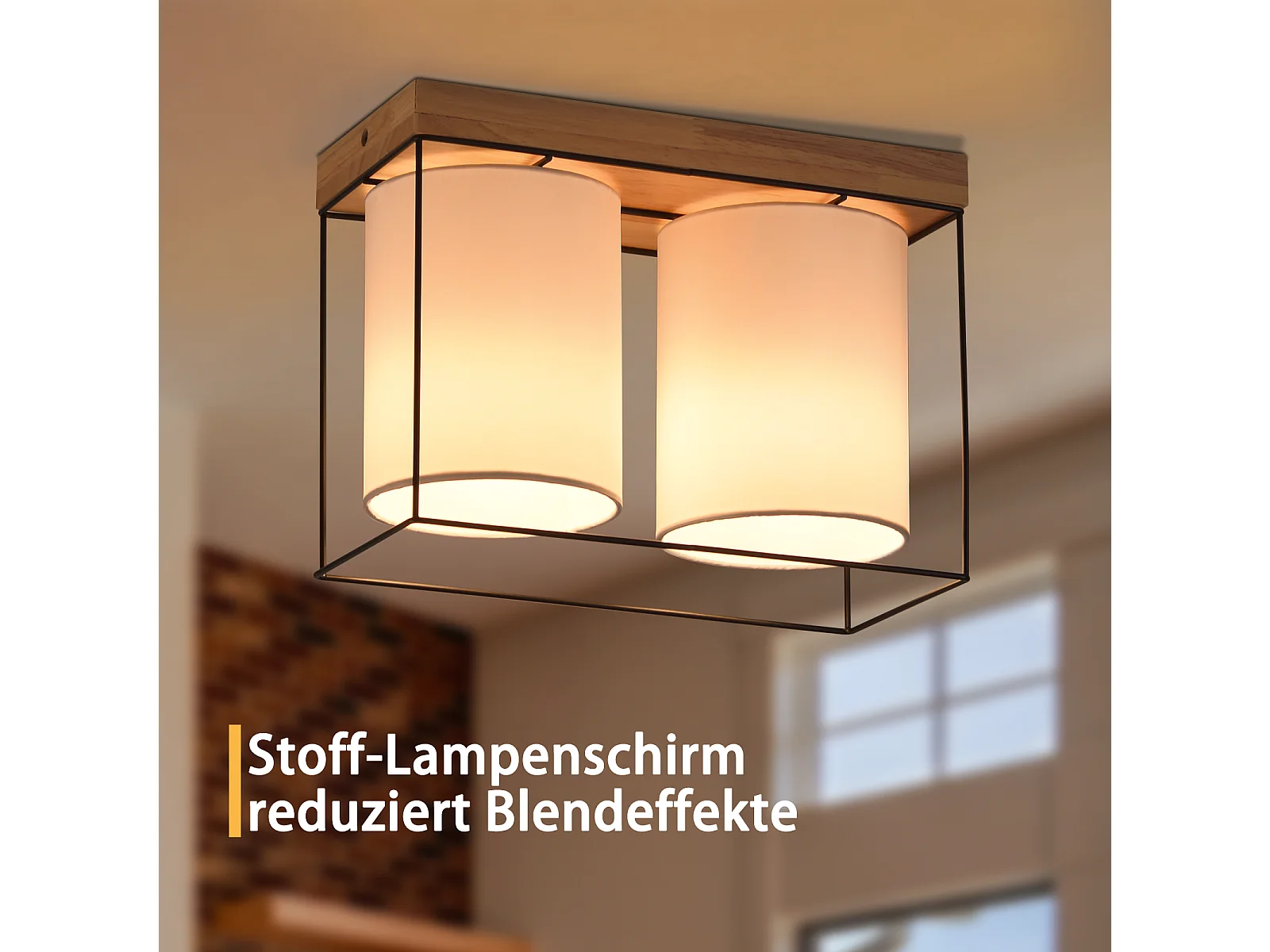 NETTLIFE Lámpara de techo dormitorio vintage plafón 2 bombillas E14 madera con estilo industrial retro