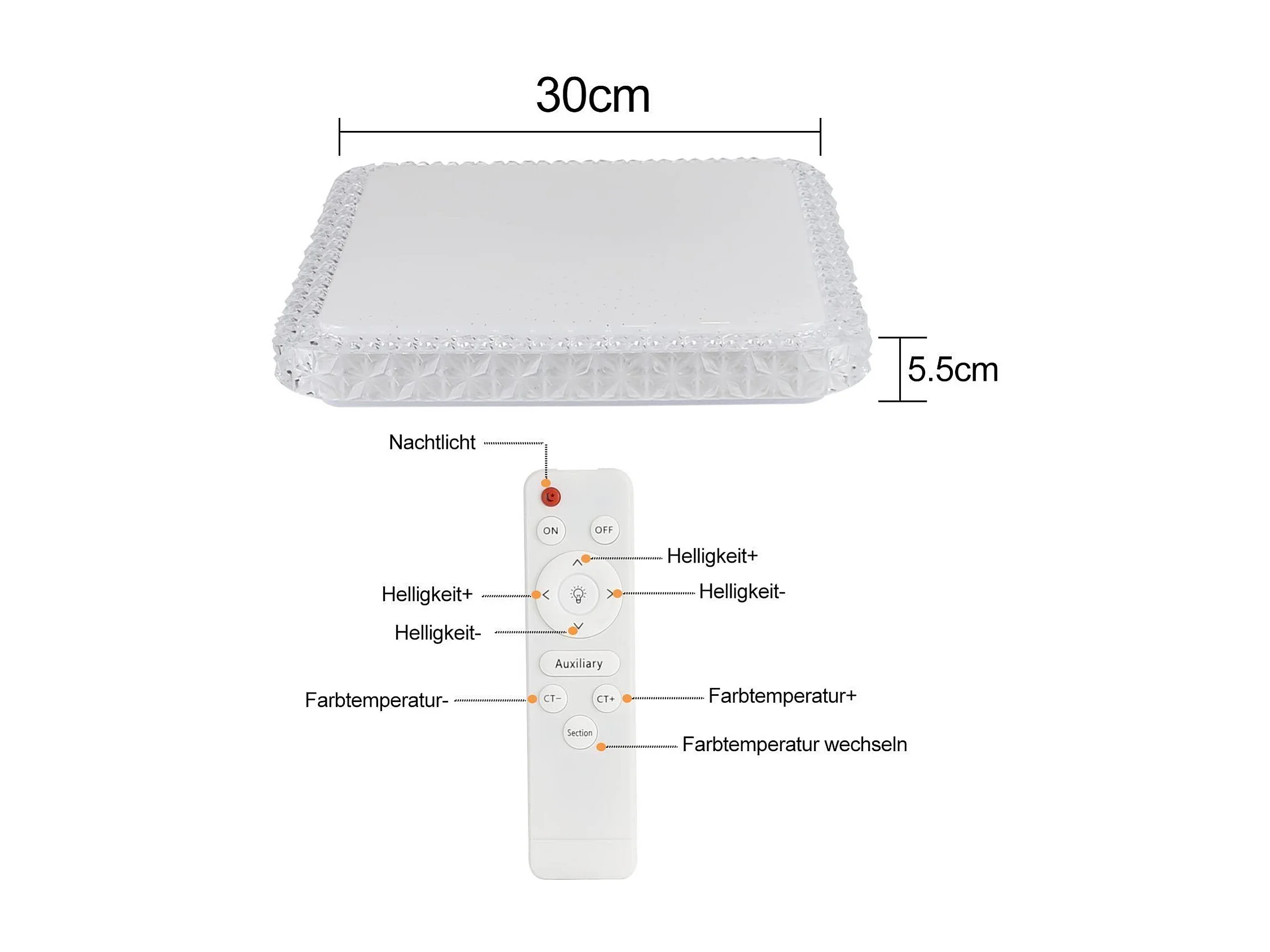 NETTLIFE Lámpara de Techo LED Moderna Cuadrada 30CM Diseño de Cielo Estrellado de Cristal Regulable con Control Remoto Blanco Pequeño para
