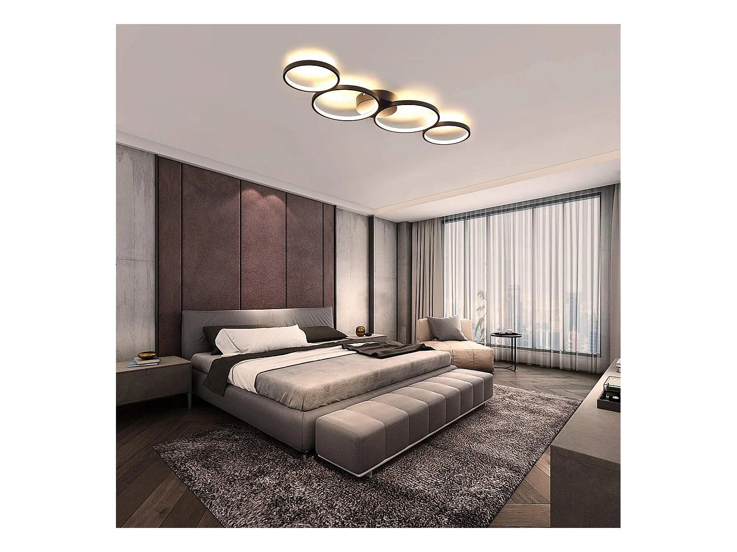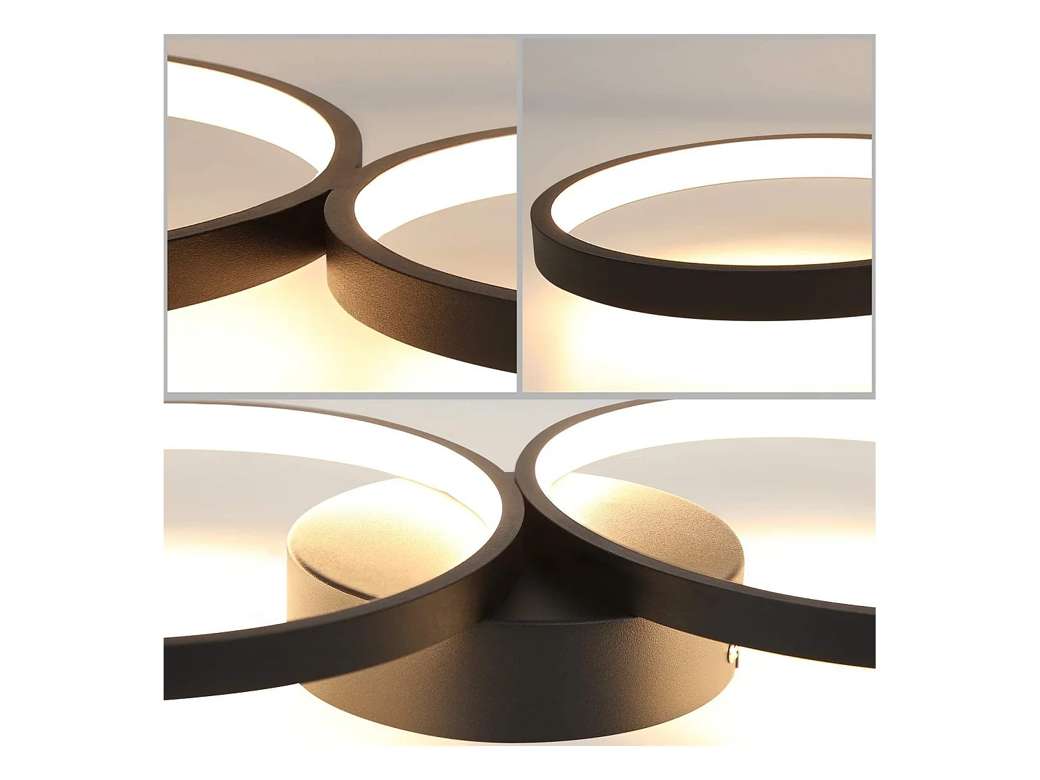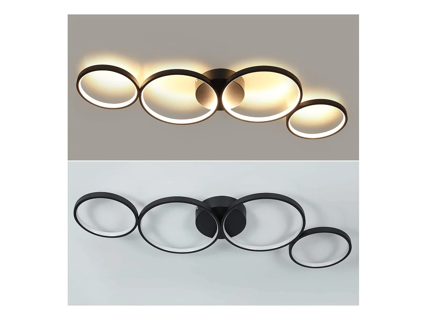 NETTLIFE Lámpara de Techo LED Negro Cálido 29W Moderna con 4 Anillos Lámpara de Diseño Lámpara Decorativa para Dormitorio para Habitación Infantil