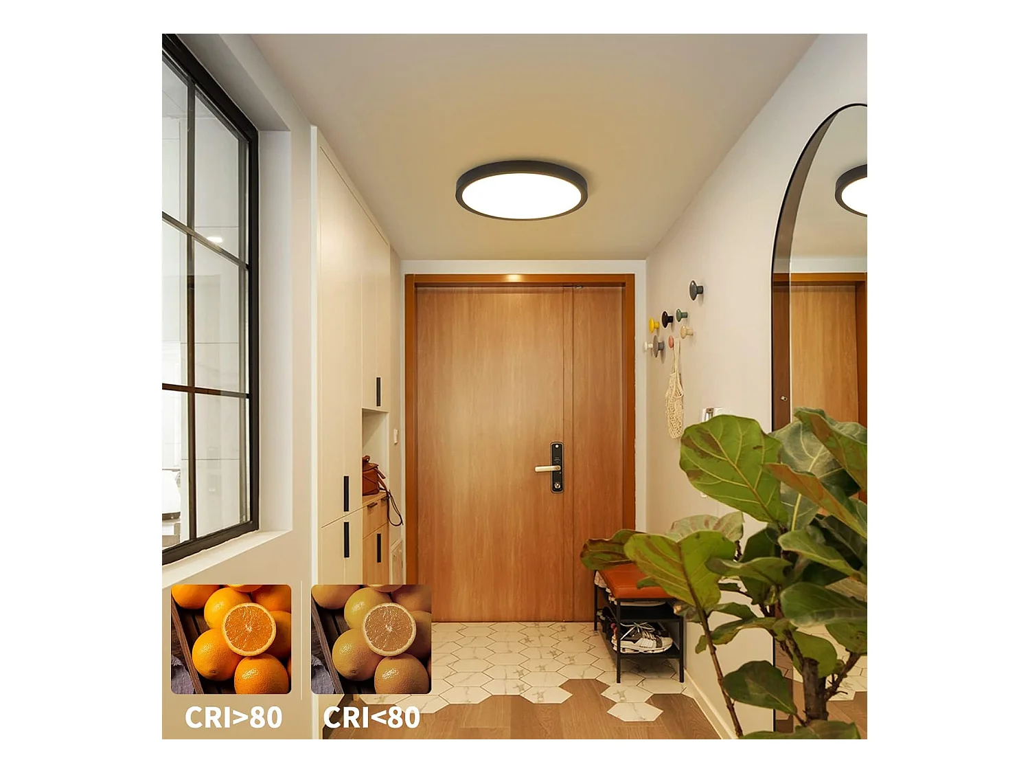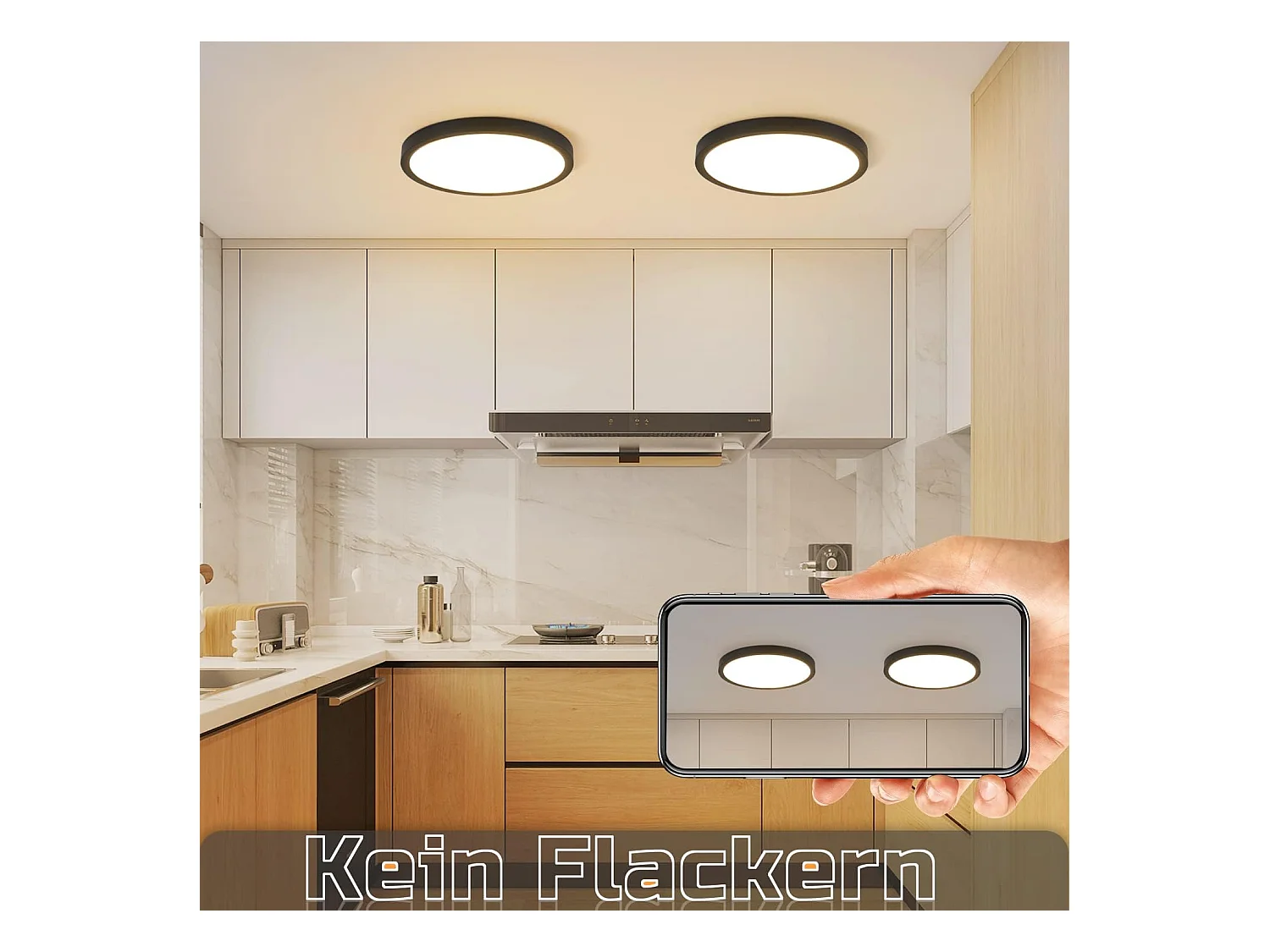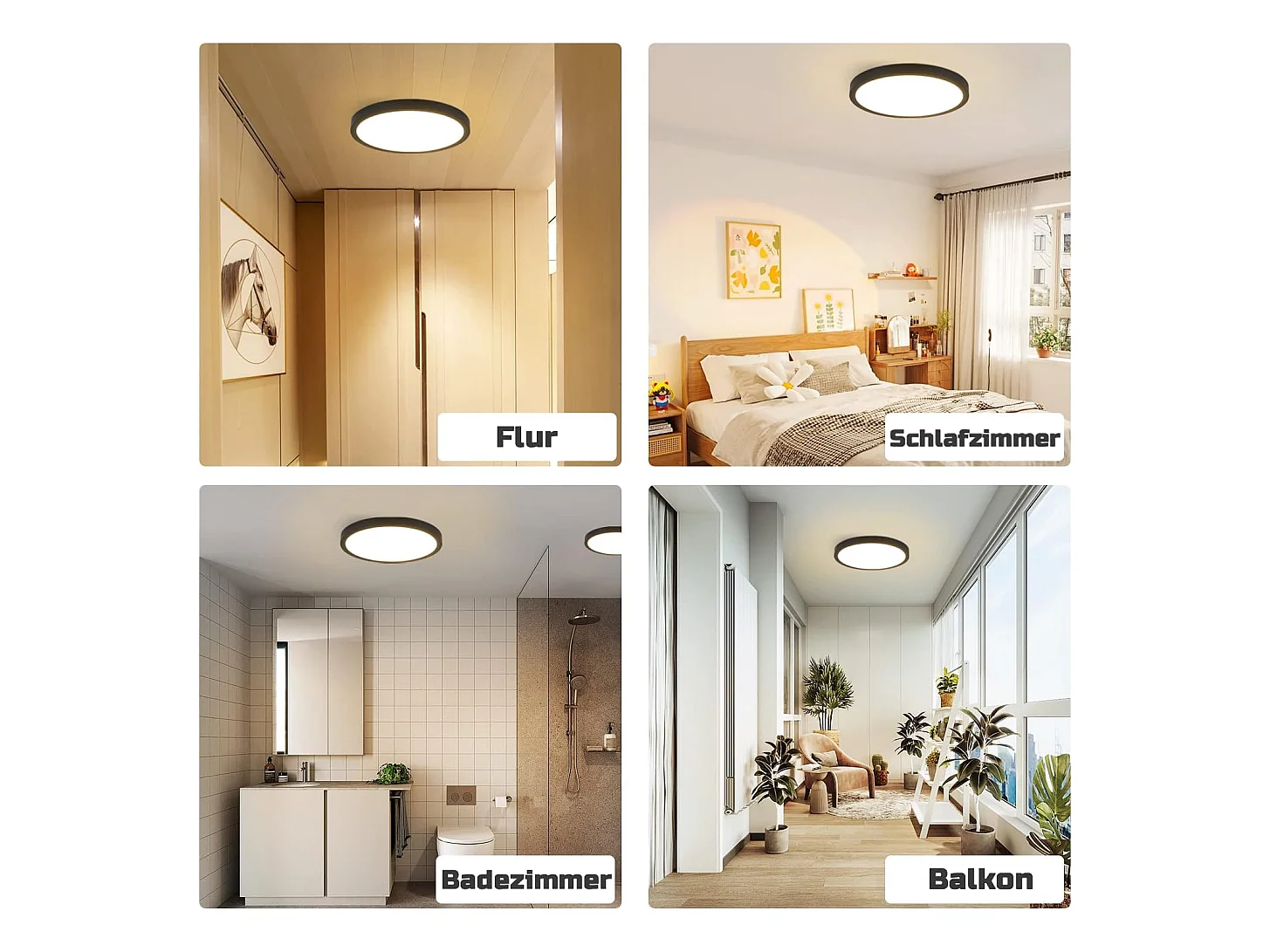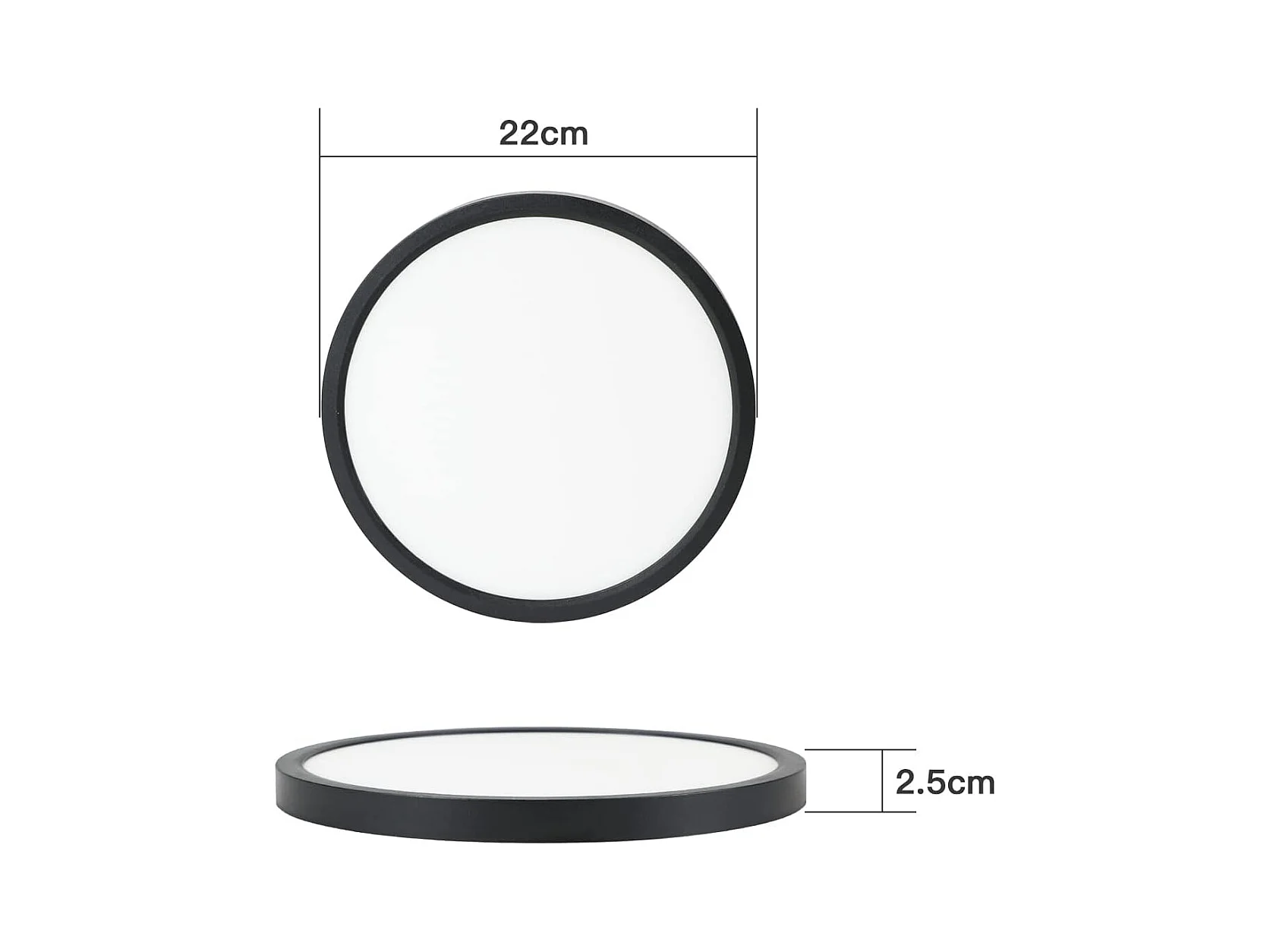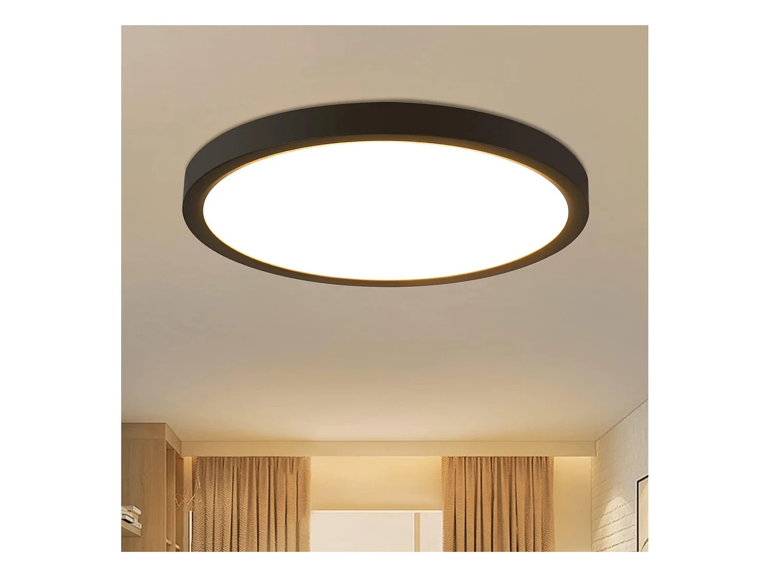 NETTLIFE Lámpara de techo LED plana para dormitorio, Ø22cm, para baño, color negro, 15W, IP44