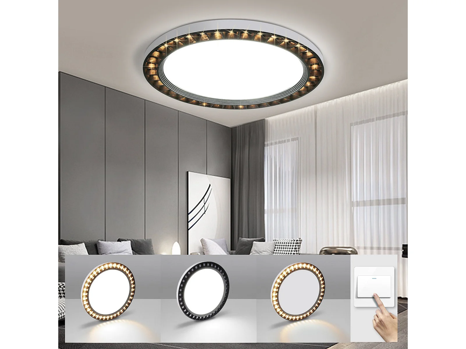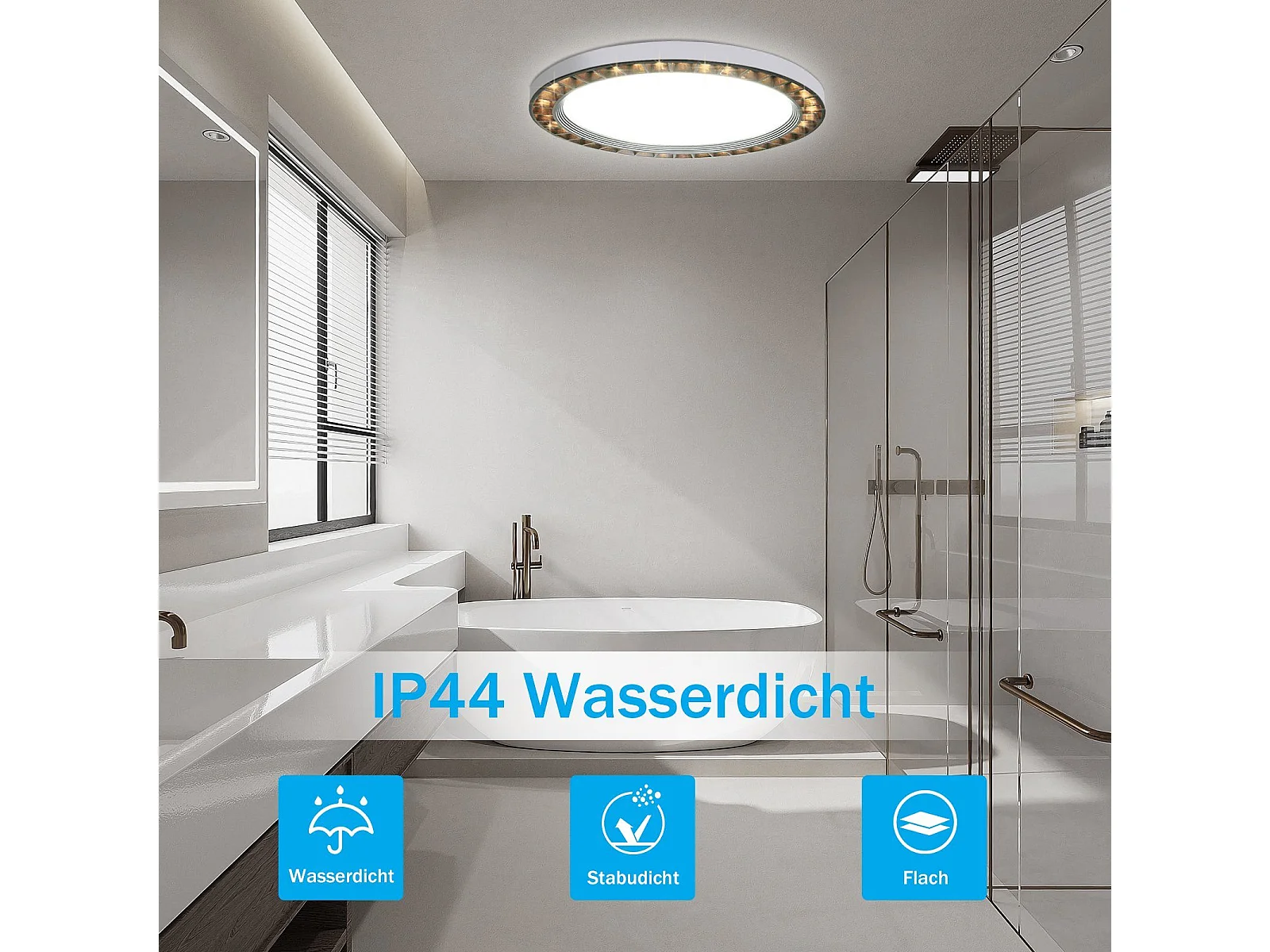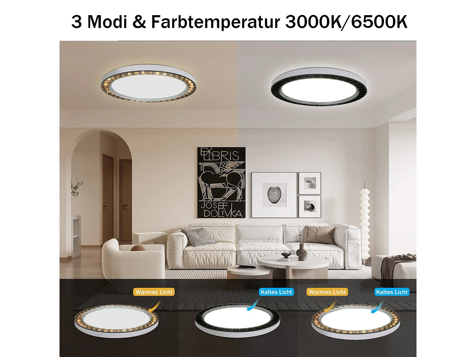 NETTLIFE Lámpara de techo LED redonda negra 28W 28CM Panel plano moderno 3000K/6500K Blanco cálido y frío IP44 Lámpara de baño impermeable para cocina
