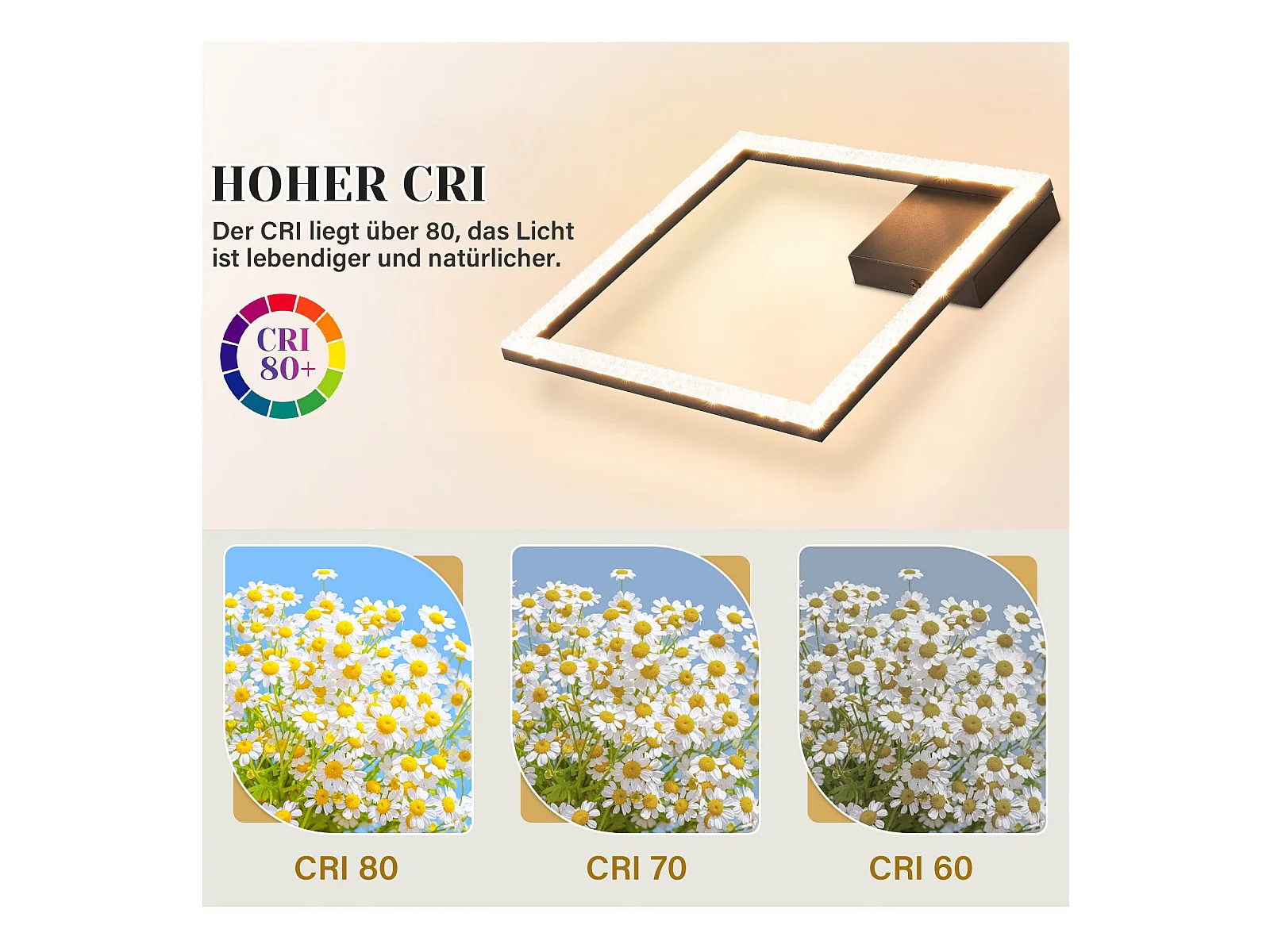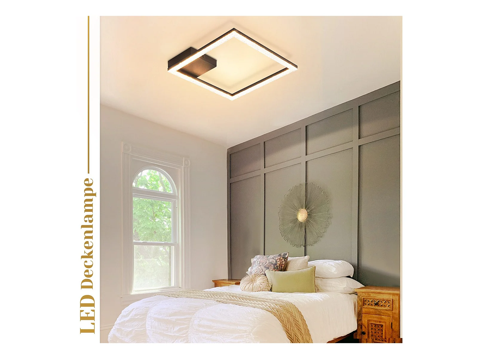NETTLIFE Lámpara de Techo LED 12W Lámpara de Cristal Blanco Cálido 3000K Luz Negra Lámpara de Metal Cuadrada Moderna para Sala de Estar Dormitorio