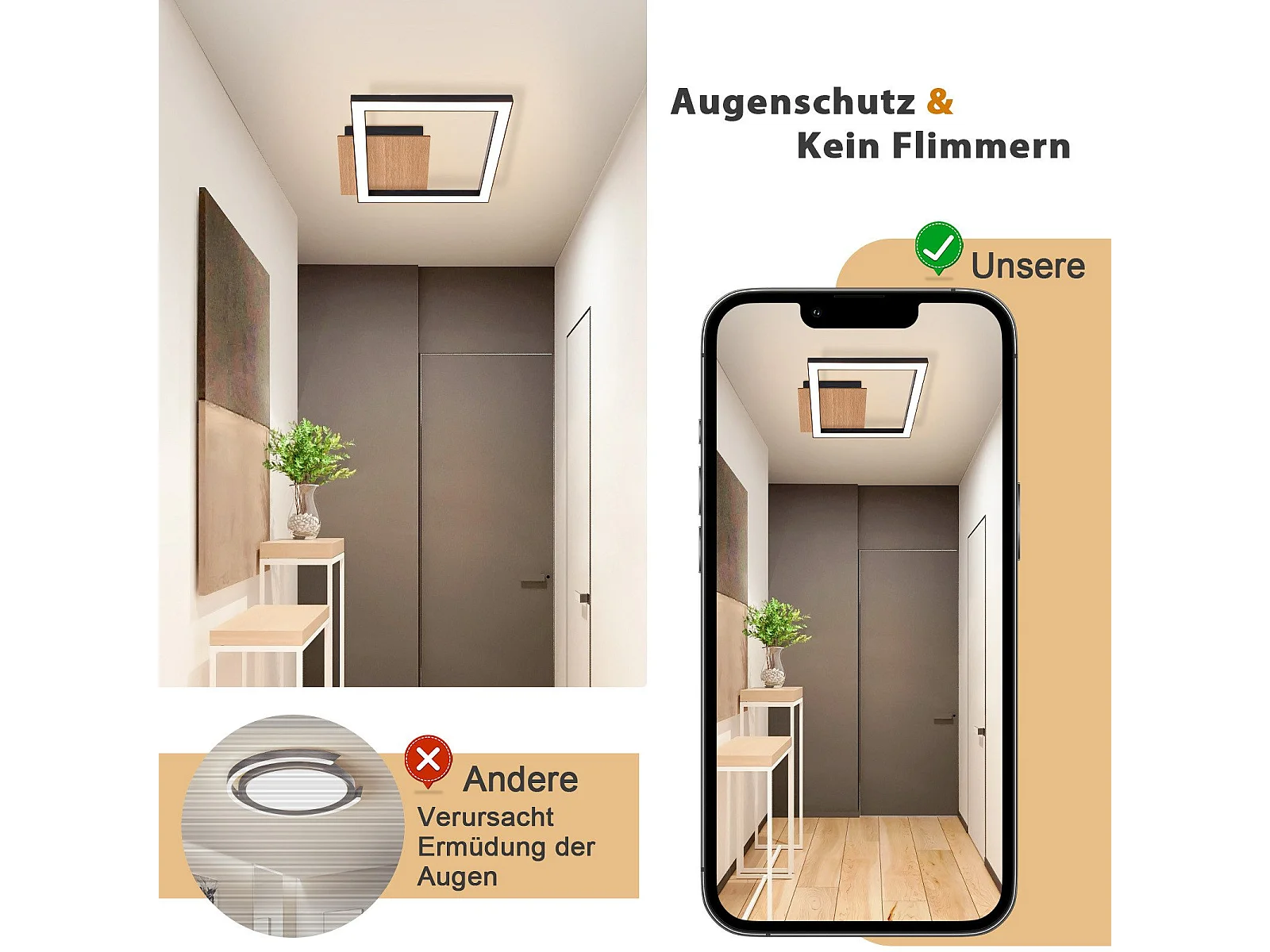 NETTLIFE luces de techo LED, luz de techo de 3000K, blanco cálido moderno, 12W, madera pequeña.