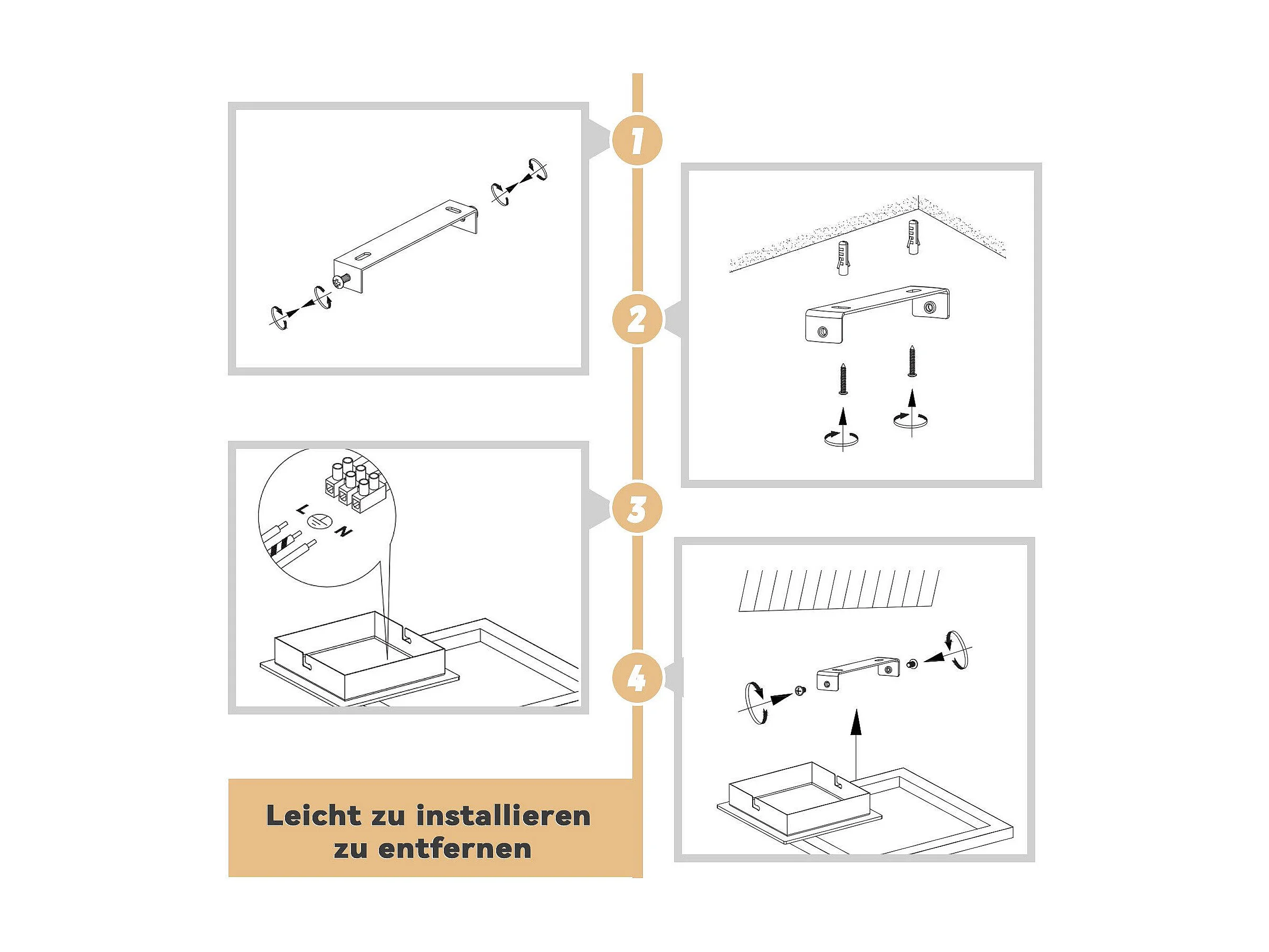 NETTLIFE Plafón LED Plano 23CM 6500K 18W Cuadrado Dormitorio Negro LED Integrado Permanentemente