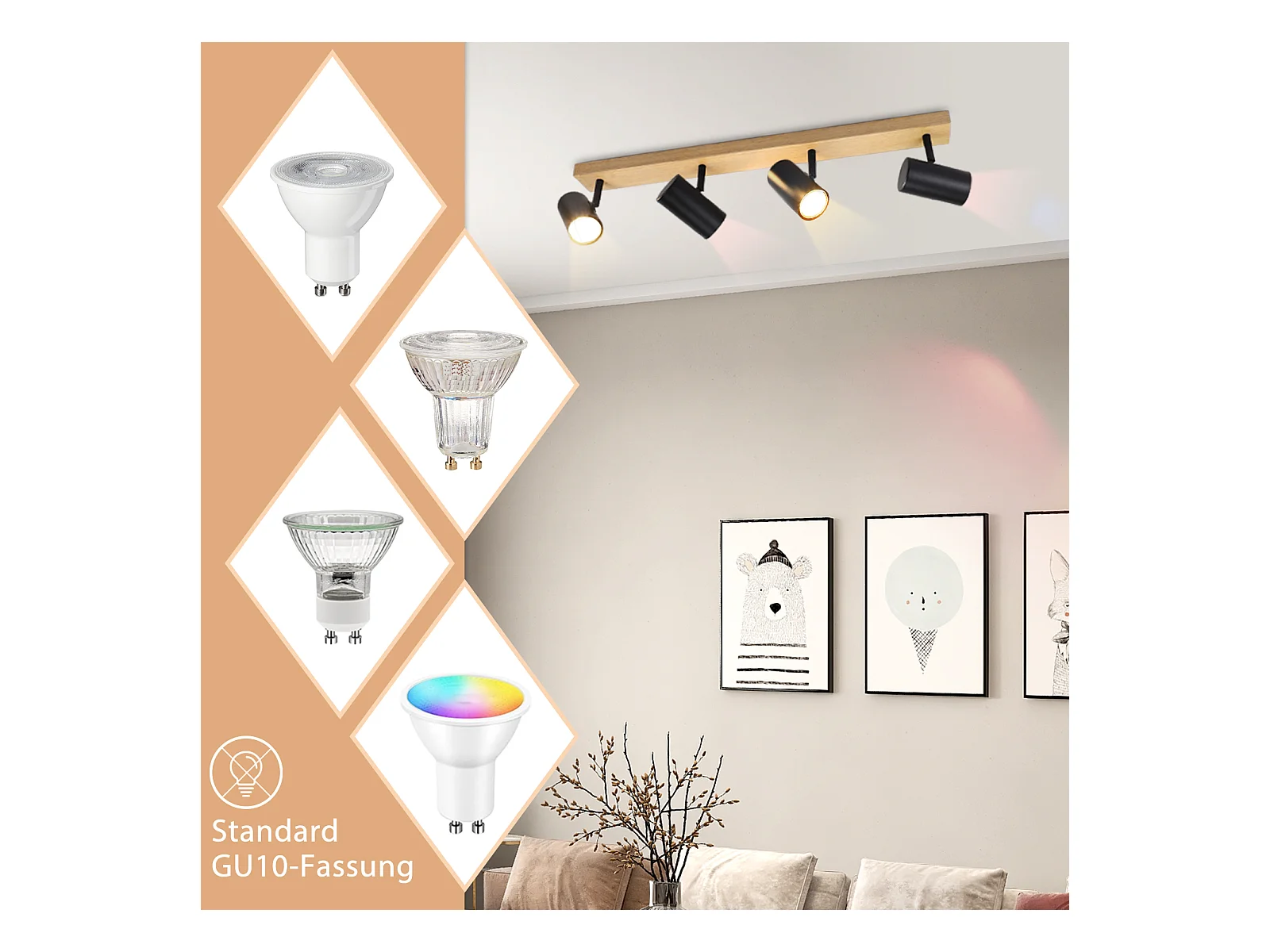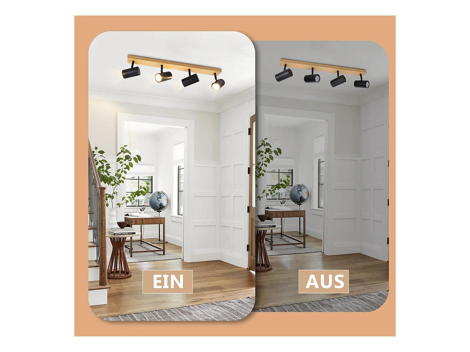NETTLIFE Plafocénter de techo con 4 llamas, lámpara de techo de madera negra, GU10 orientable 350°, de estilo vintage.