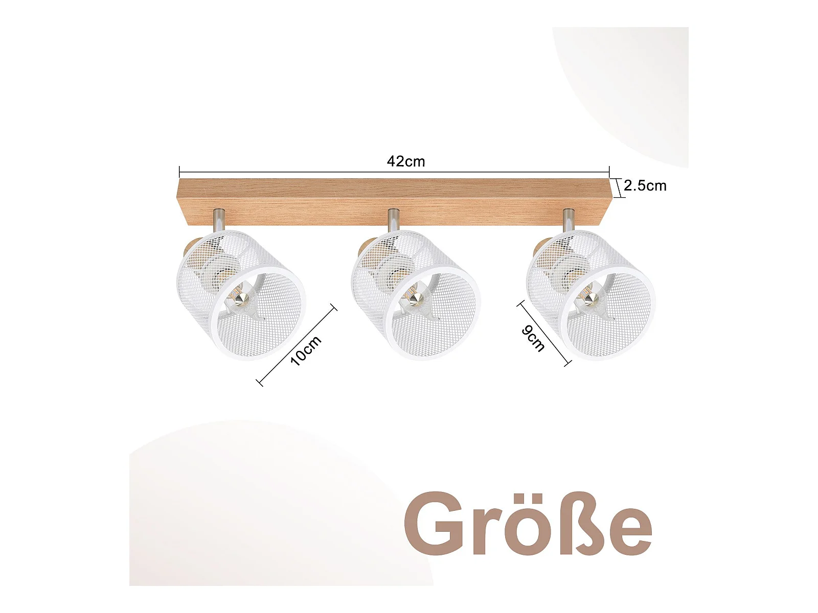 NETTLIFE Plafón con 3 focos blanco, aspecto de madera - plafón E14 giratorio 350° con un máximo de 4 bombillas de 25w, moderno para sala, dormitorio, cocina.