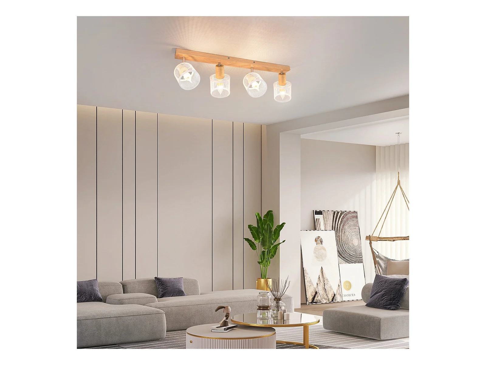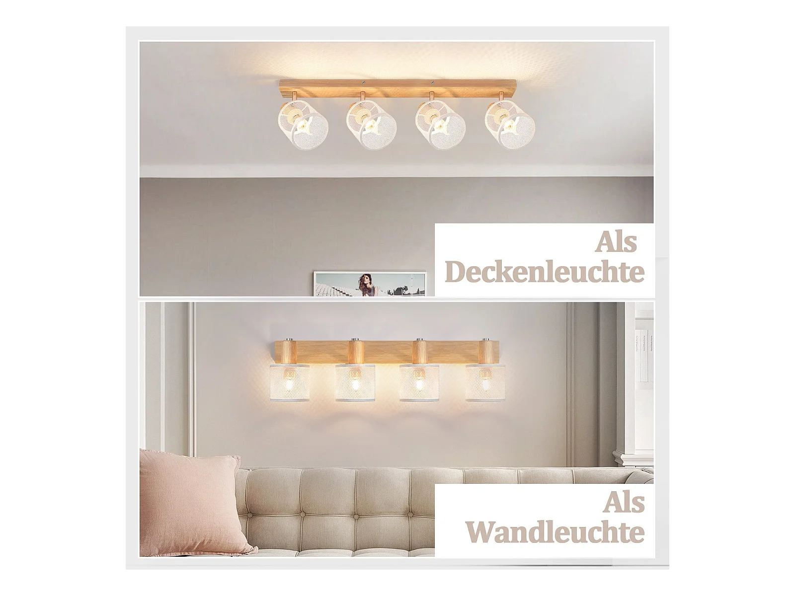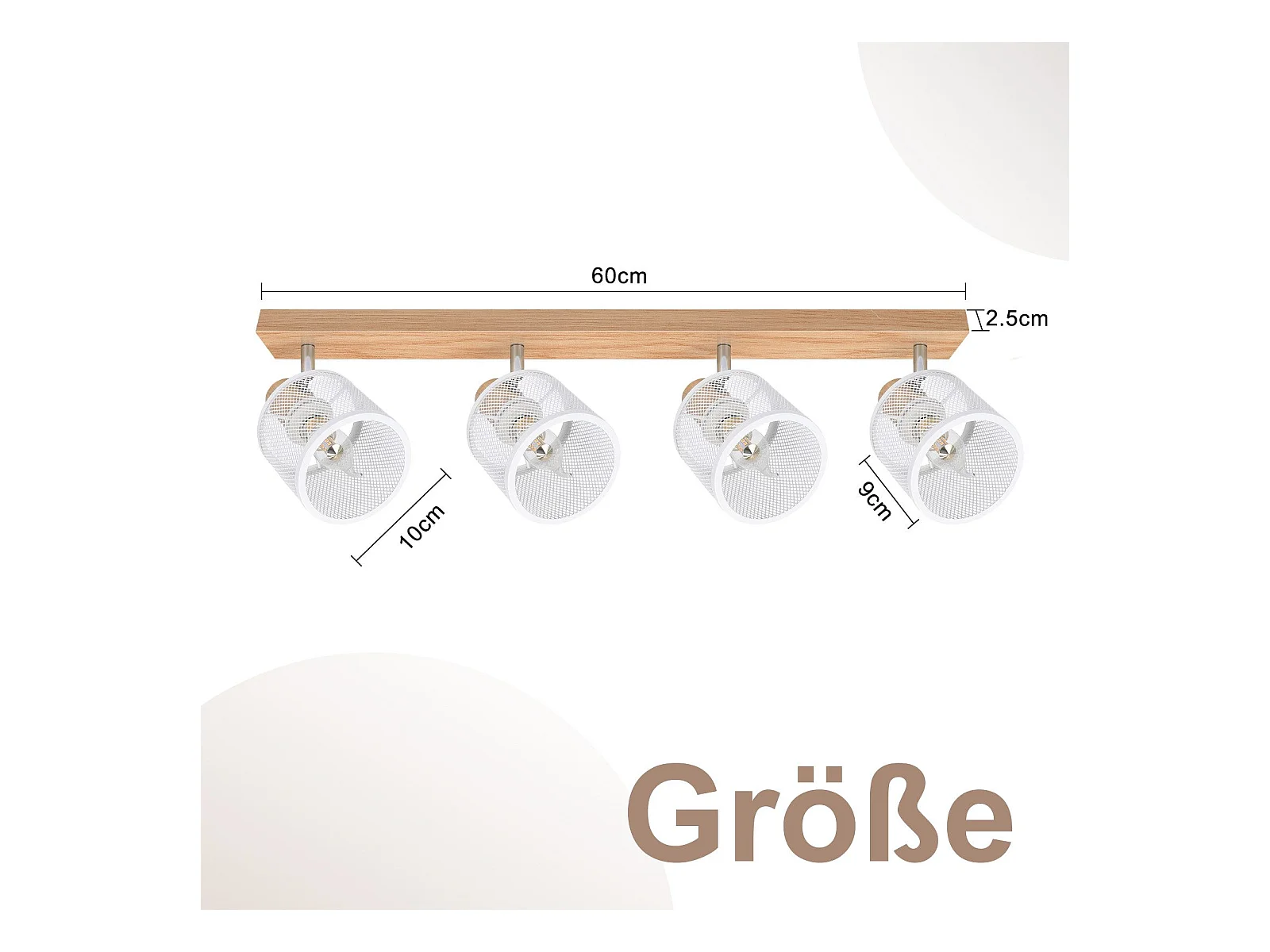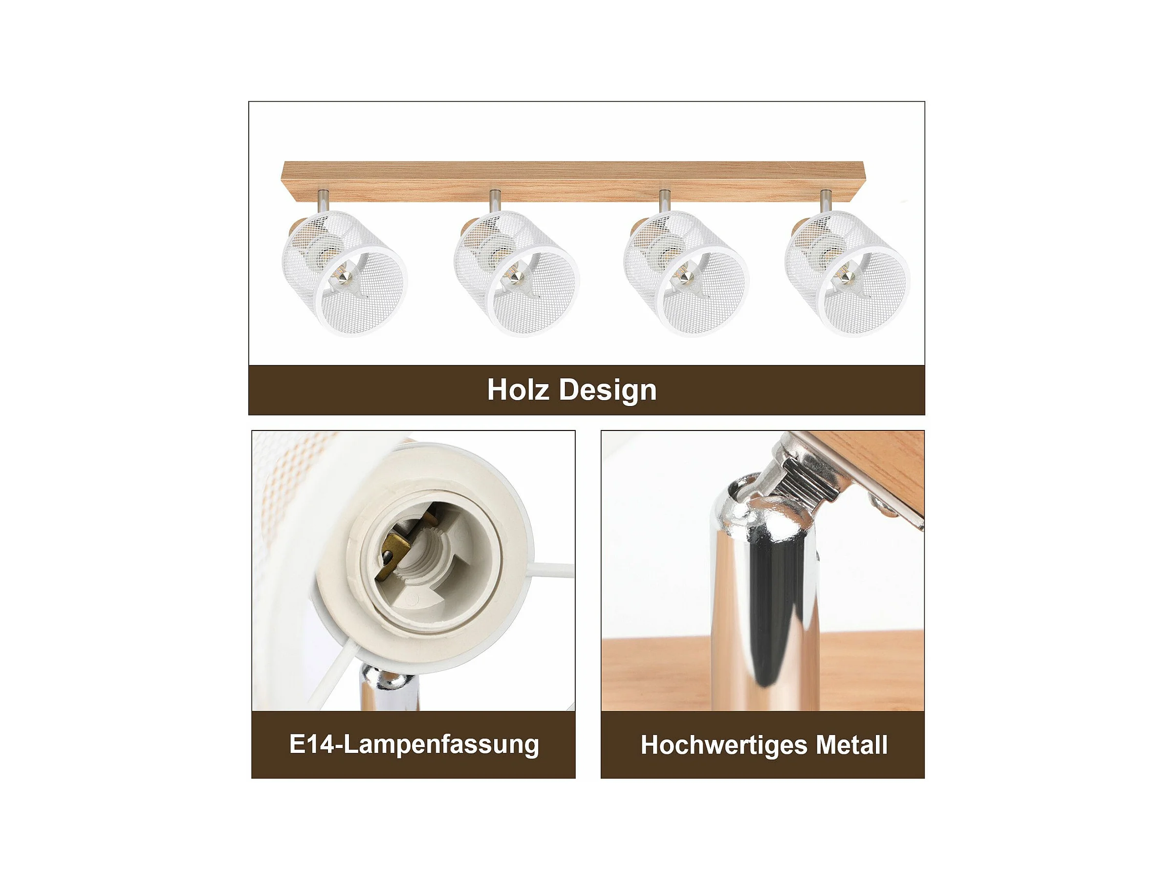 NETTLIFE Plafóndaro de 4 focos, blanco con aspecto de madera - plafóndaro E14 giratorio 350°,máximo 4 bombillas de 25 w, moderno para salón, dormitorio y cocina.