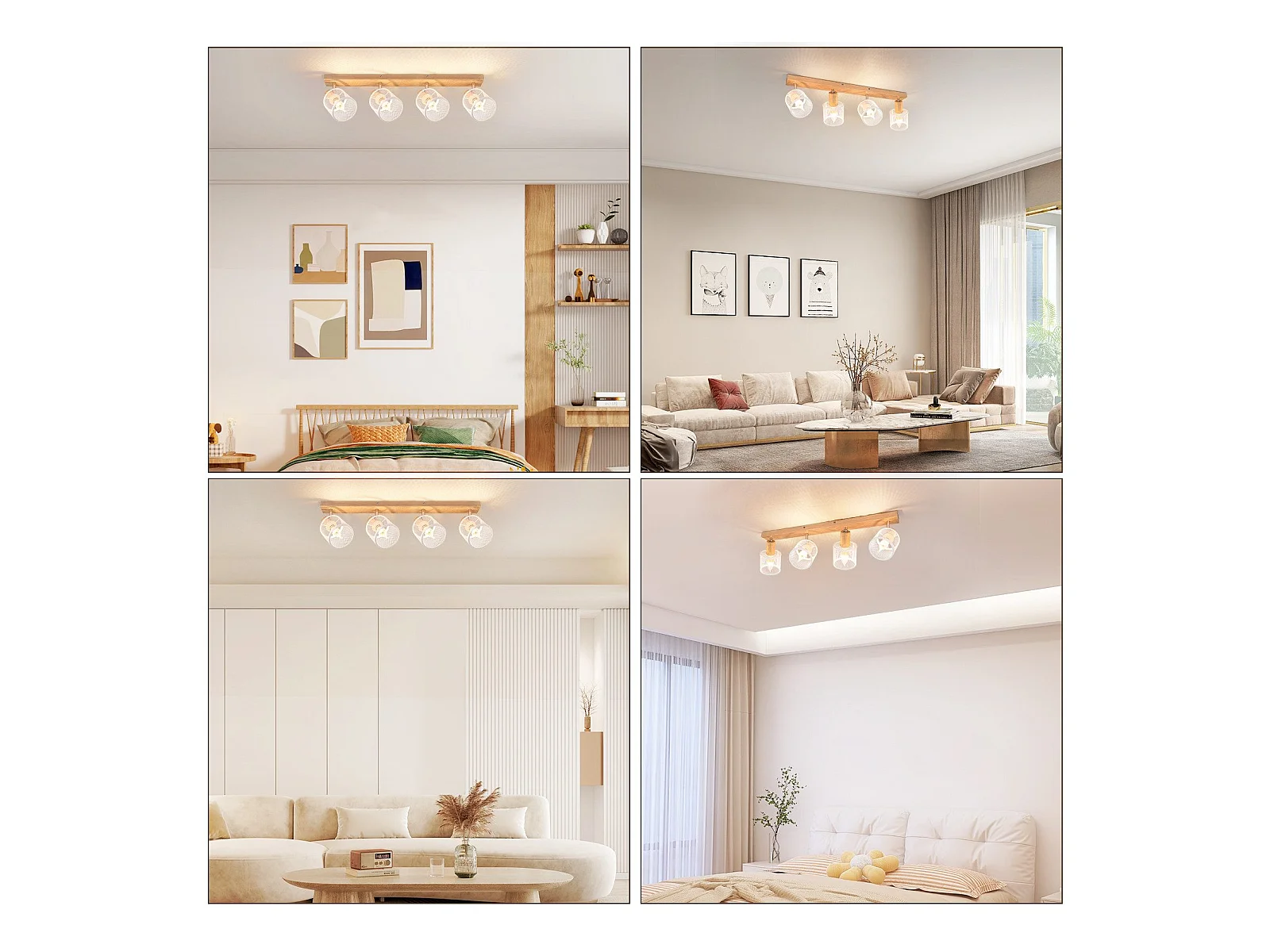 NETTLIFE Plafóner 1 Foco blanco de aspecto de madera - plafóner E14 orientable 350° con un máximo de 4 bombillas de 40w, moderno para sala, dormitorio, cocina.