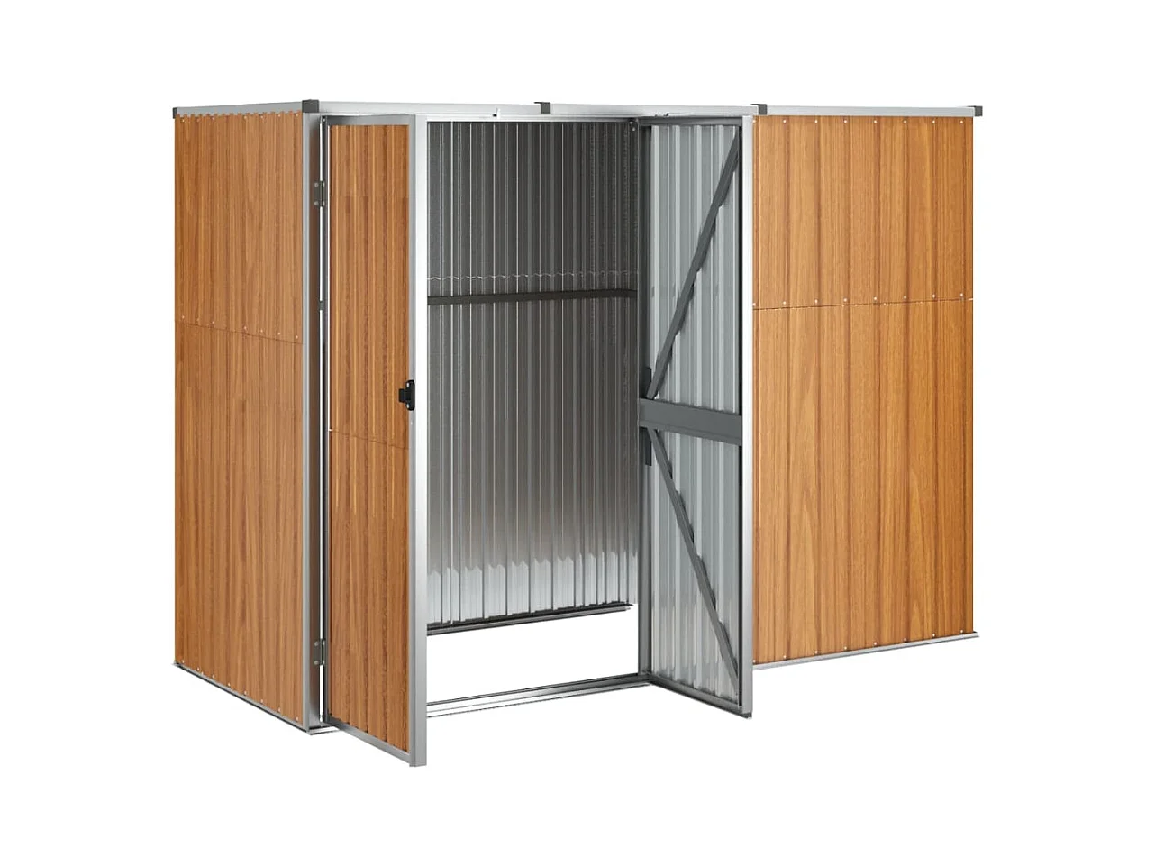 Caseta de jardín metálica con techo inclinado, de acero galvanizado, color marrón (161,5x94,5x196 cm)